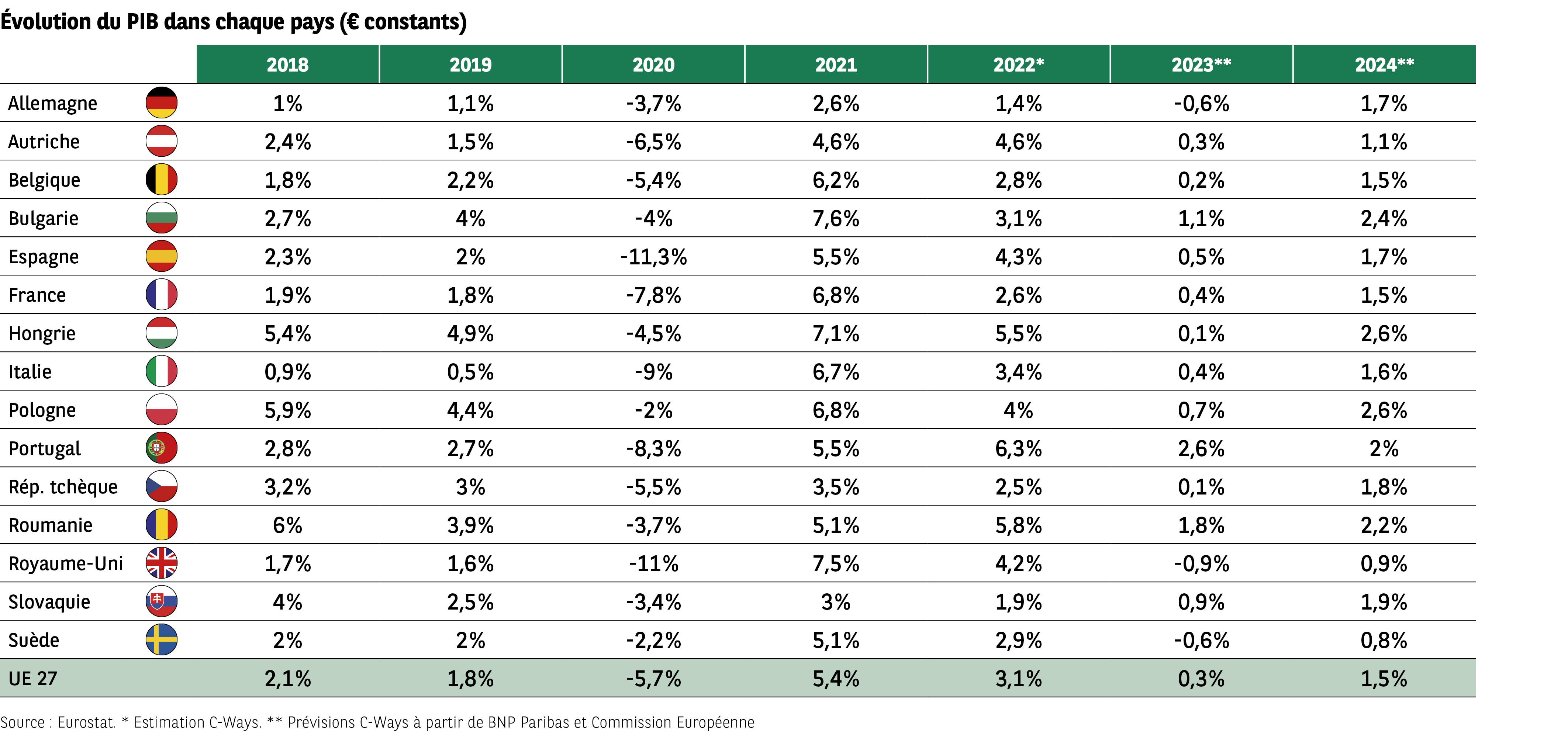 Avec le retour brutal de l’inflation – du jamais vu depuis près de 40 ans – dopée par la guerre en Ukraine, les Européens doivent apprendre désormais à vivre avec des hausses de prix à deux chiffres. Les prix de l’énergie ont explosé bien avant le 24 février 2022, premier jour de la guerre en Ukraine. Les difficultés d’approvisionnement en gaz ou en électricité ont fait revenir dans le débat économique le mot pénurie qui en avait été exclu depuis longtemps. Les conséquences du réchauffement climatique, avec notamment de fortes sécheresses et de grandes inondations, a mis à mal la production de denrées de base. La croissance mondiale est passée de 6 % en 2021 à 3,2 % en 2022, avec 2,7 % attendus pour 2023. Le profil de croissance le plus morose depuis la crise financière mondiale de 2008-2009 et le pic du Covid-19.