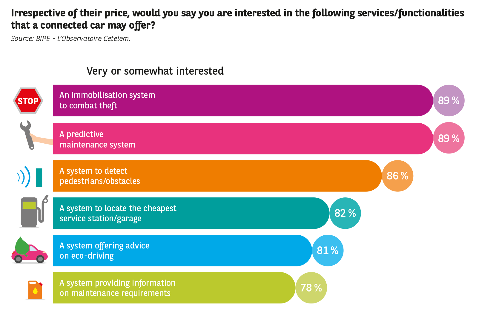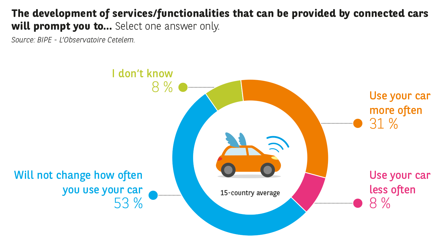 And although consumers are usually fiercely opposed to price rises, they are prepared to accept an increase in the price of vehicles in this particular case. And their judgement is not unfounded: they believe the features offered by connected cars will be of real use to them and justify the extra cost. Far from being just a gadget, connected cars (and eventually autonomous vehicles) will be a genuine growth engine for the automotive sector!