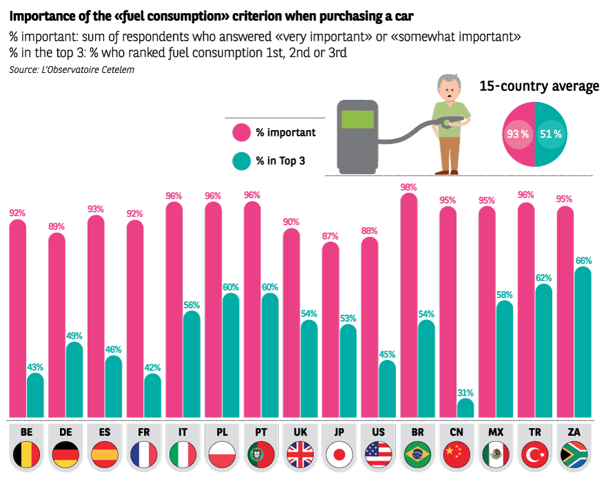 Manufacturers have also shown that they are prepared to listen to motorists’ demands for more eco-friendly vehicles. Indeed, 93% of motorists state that they are mindful of their vehicle’s fuel consumption. More than half include this factor in their top 3 purchasing criteria. Thus, while the success of Toyota, which leads the way when it comes to the market penetration of hybrid engines, remains an exception in the global automotive landscape, technologies combining fossil and electrical energy have made significant progress in terms of sales.