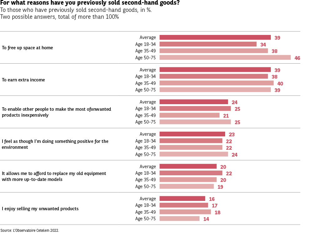 Context: Multiple-choice responses in percent about motivations for selling used items.