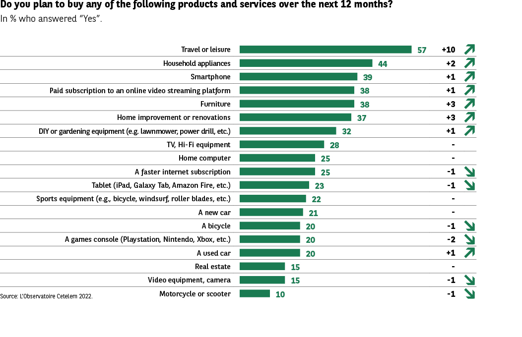 Source: Cetelem Observatory 2022. The arrows (increase/decrease) are decorative.
