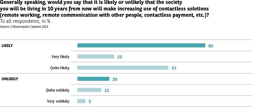 - 80% of Europeans think it is likely that society will place a greater emphasis on contactless practices in 10 years’ time