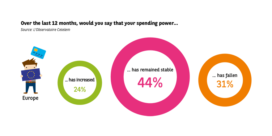 This result is driven by greater positivity when it comes to material considerations. 7 out of 10 Europeans believe that their spending power has remained stable or improved, with the proportion signalling an increase having risen by 6 points (+24%). The Swedes, Romanians and Norwegians express the most positive opinions on this topic (38%, 37% and 35%). However, almost 1 in 2 French consumers continue to reject the idea and believe that their spending power has fallen.