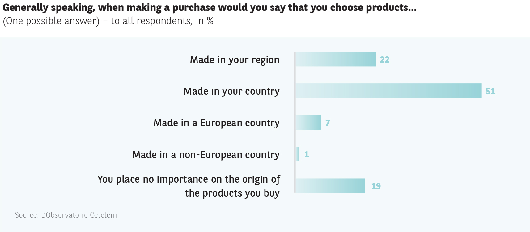 1 in 2 Europeans (+1 point) state that they prefer products made in their country. the rise in the consumption of domestic products is strongest in Austria (+13 points).