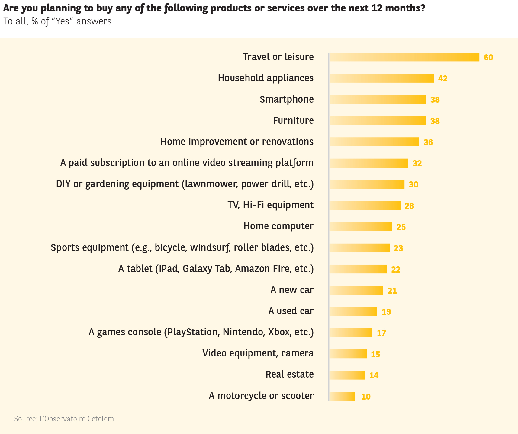 Travel and leisure are still the number one among Europeans. And like last year, subscriptions to streaming or VOD services are the fastest growing category (+4 points).