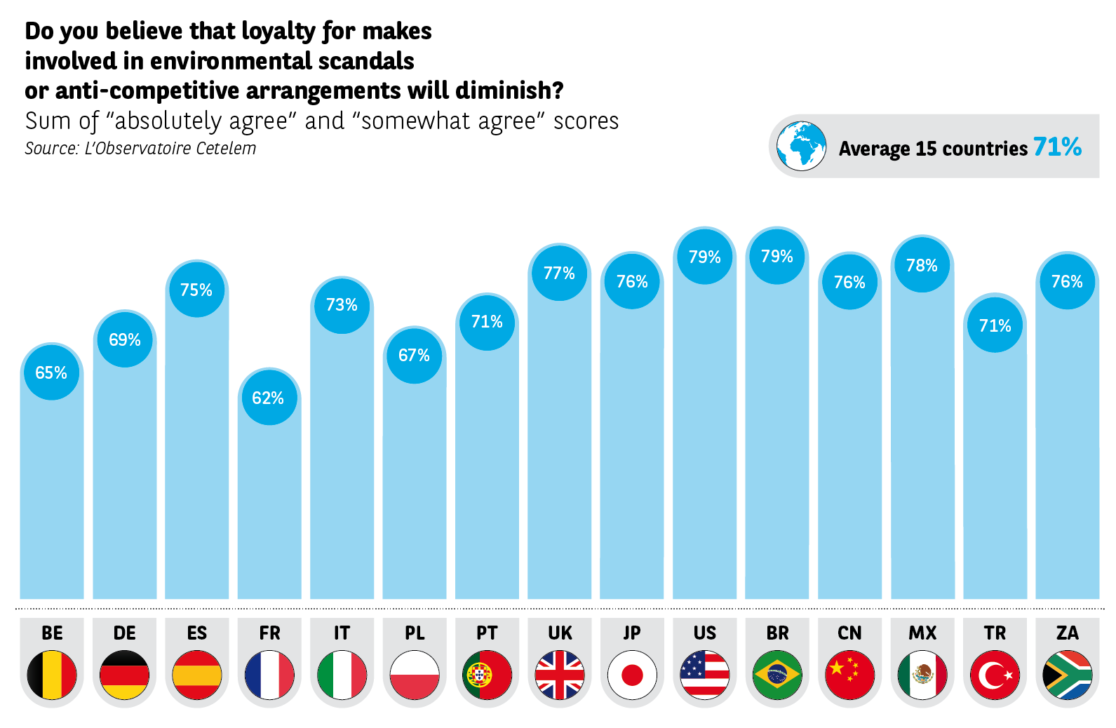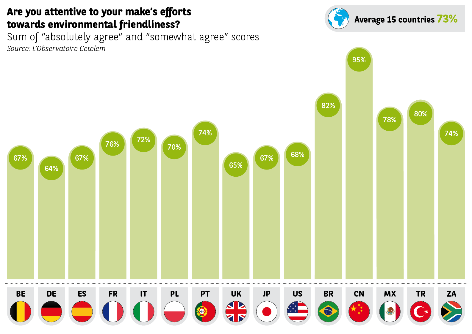 It is also true that the makes generally react fast and powerfully. Caught in the act on the environmental front, Volkswagen counter-attacked. The group announced an investment of 20 billion euros to bring no less than 80 electric models to market by 2025 with the aim of reaching 25% of its future sales based on this energy source. This redemptive race for eco-friendly cars now being run willy-nilly by all manufacturers will be costly, but is sure to be profitable. 3 motorists out of 4 say they are attentive to the environmental efforts made by the makes, with the Chinese showing the highest degree of concern (95%) – and the worst urban pollution.