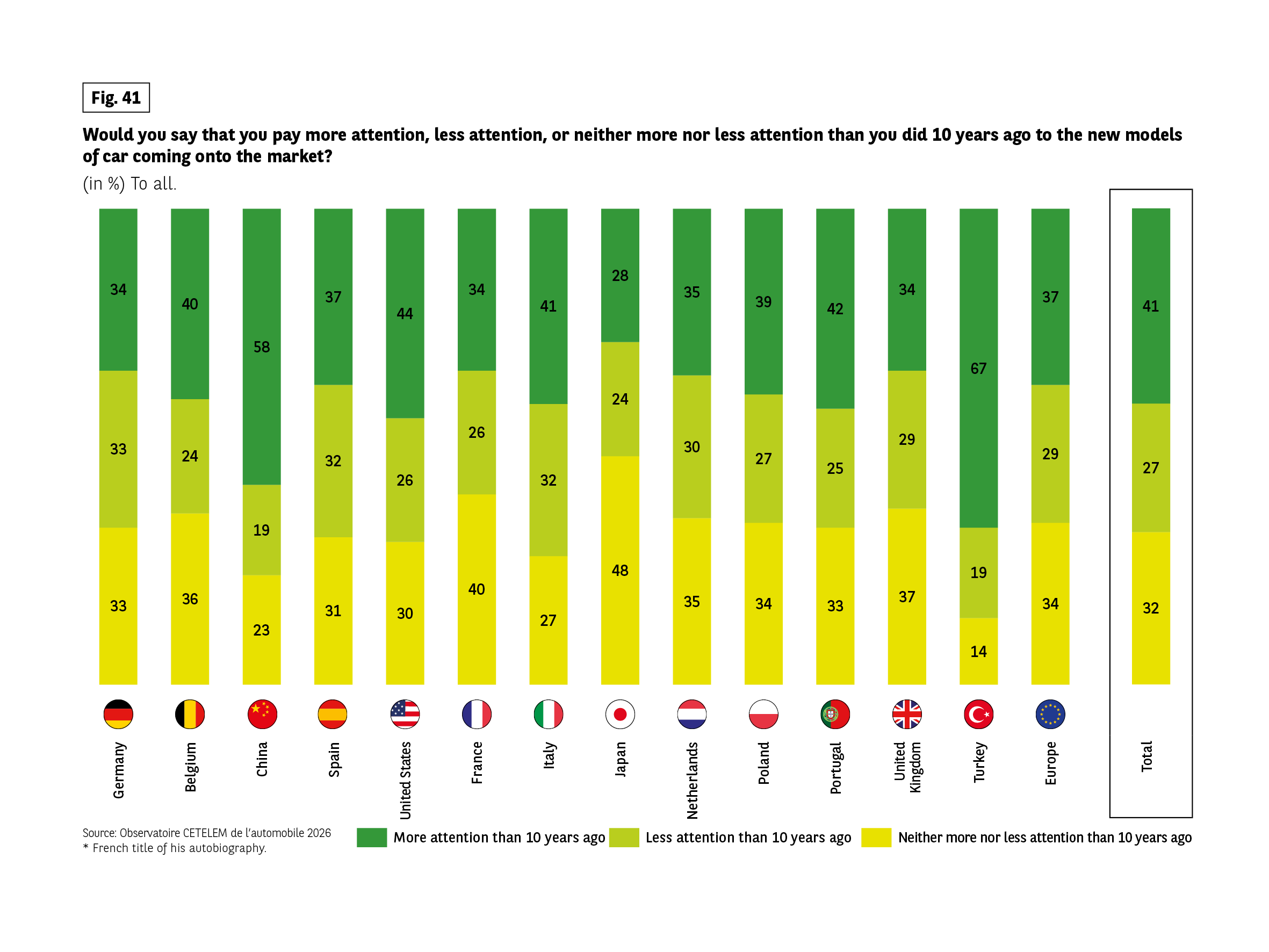 Generally speaking, beyond a single envious glance in the street, there is still a keen interest in new models. Just under 3 in 10 motorists say they are less interested in new models than they were 10 years ago. (Fig. 41).