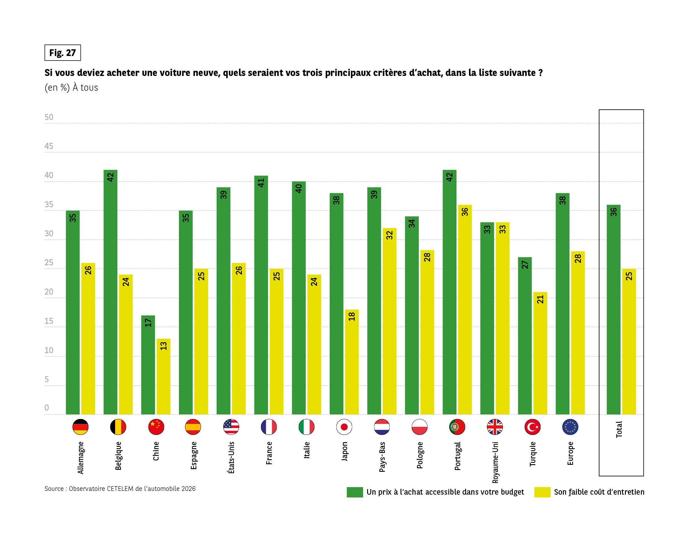 Fig 27 – Critères d’achat prioritaires pour une voiture neuve