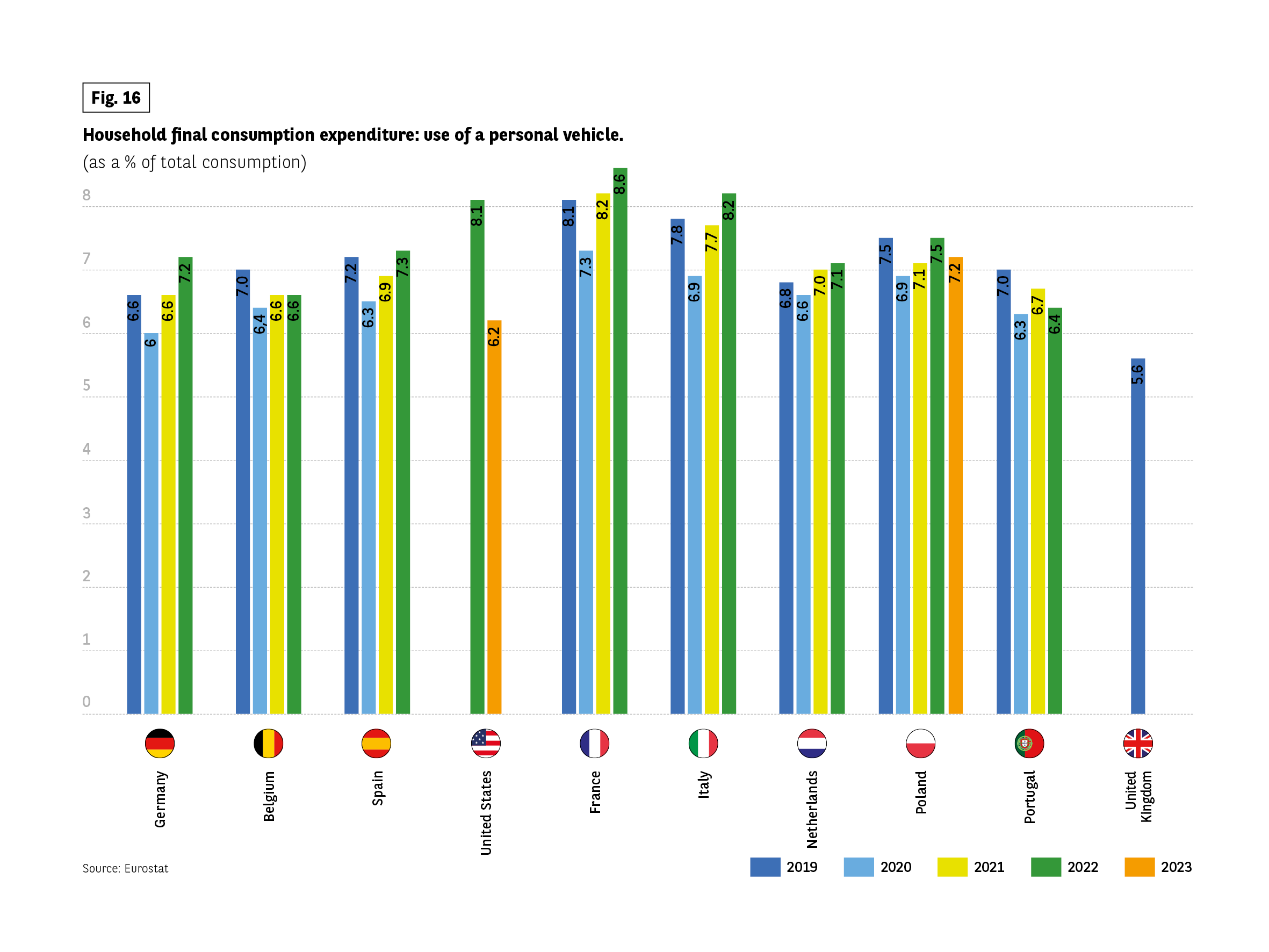 Since the health crisis, the financial burden of having a car has been increasingly felt in household budgets (Fig. 16) particularly in Europe. While the impact varies from country to country, it also depends on several factors: