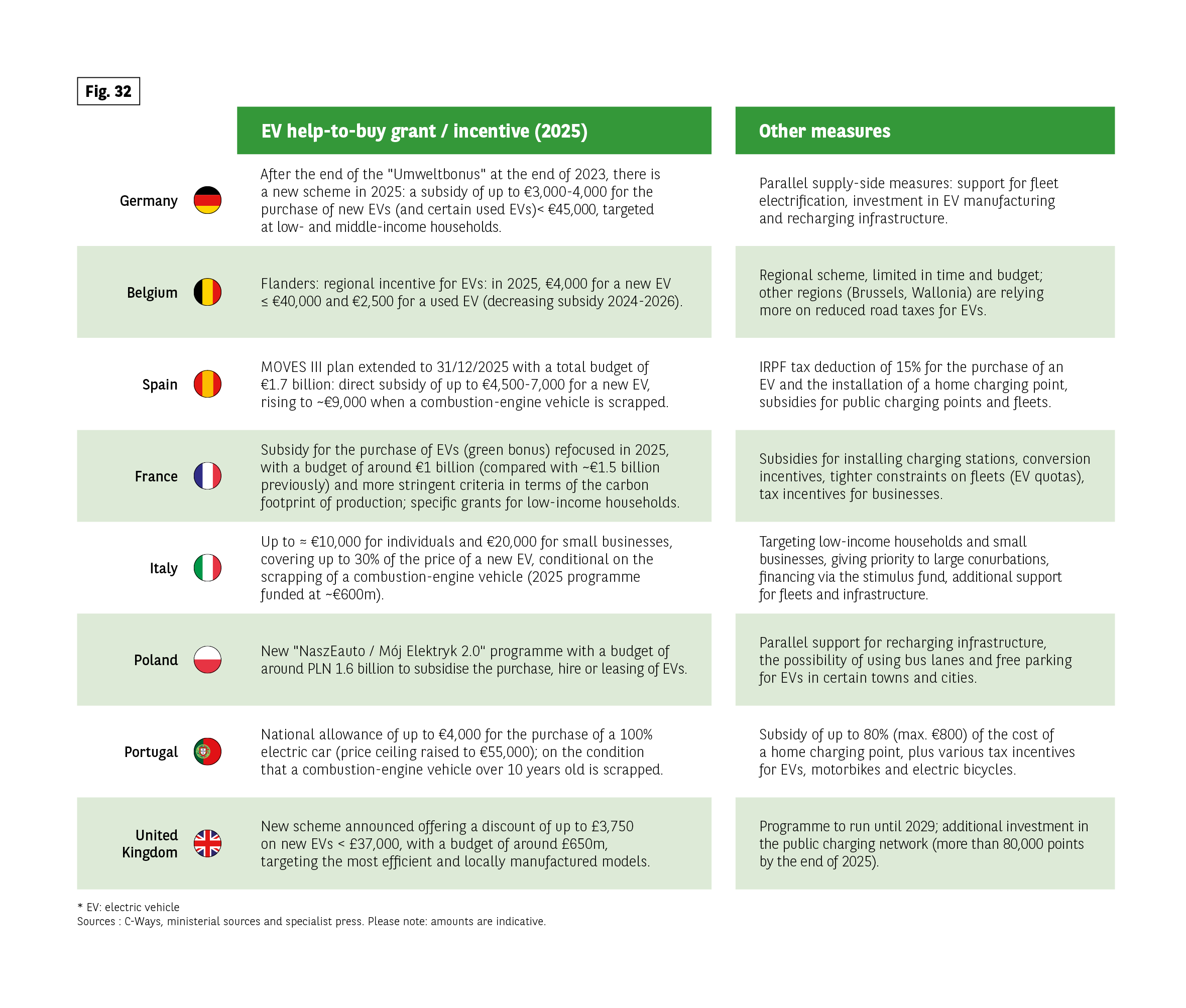 Context: Overview of national EV purchase grants and accompanying measures planned for 2025.