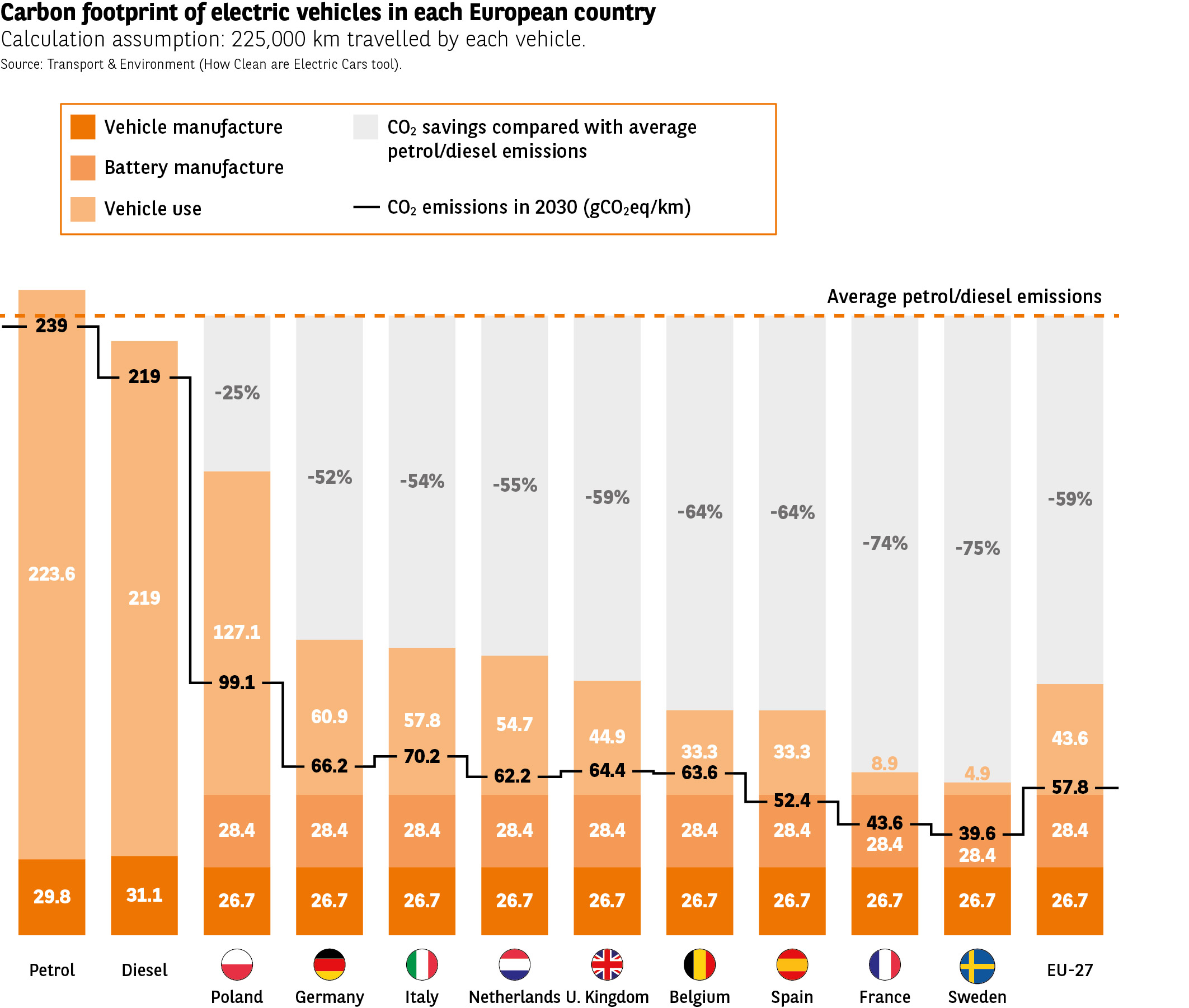 The debate around the carbon footprint of electric cars rumbles on, with critics pointing out, among other issues, that the treatment of battery waste and the depletion of the natural resources needed to manufacture cells are both problematic. Nonetheless, their environmental impact is still smaller than that of comparable diesel or petrol vehicles.