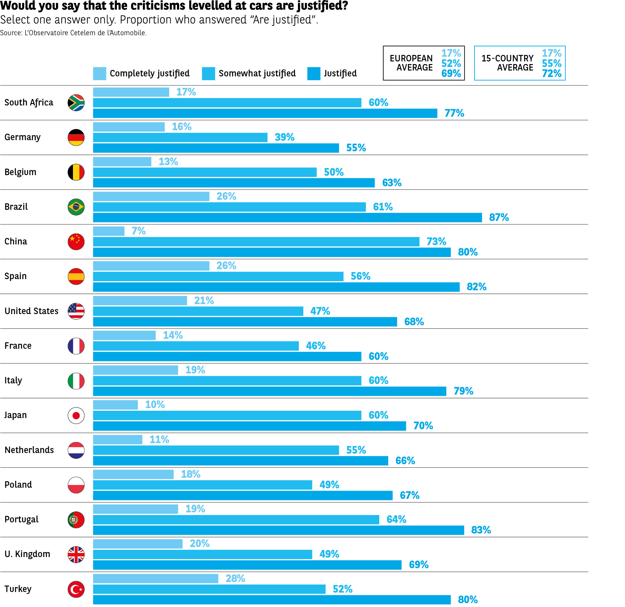 Even in the United States, whose politics in recent years has cultivated a degree of climate scepticism, 68% condemn the environmental harm caused by vehicles.