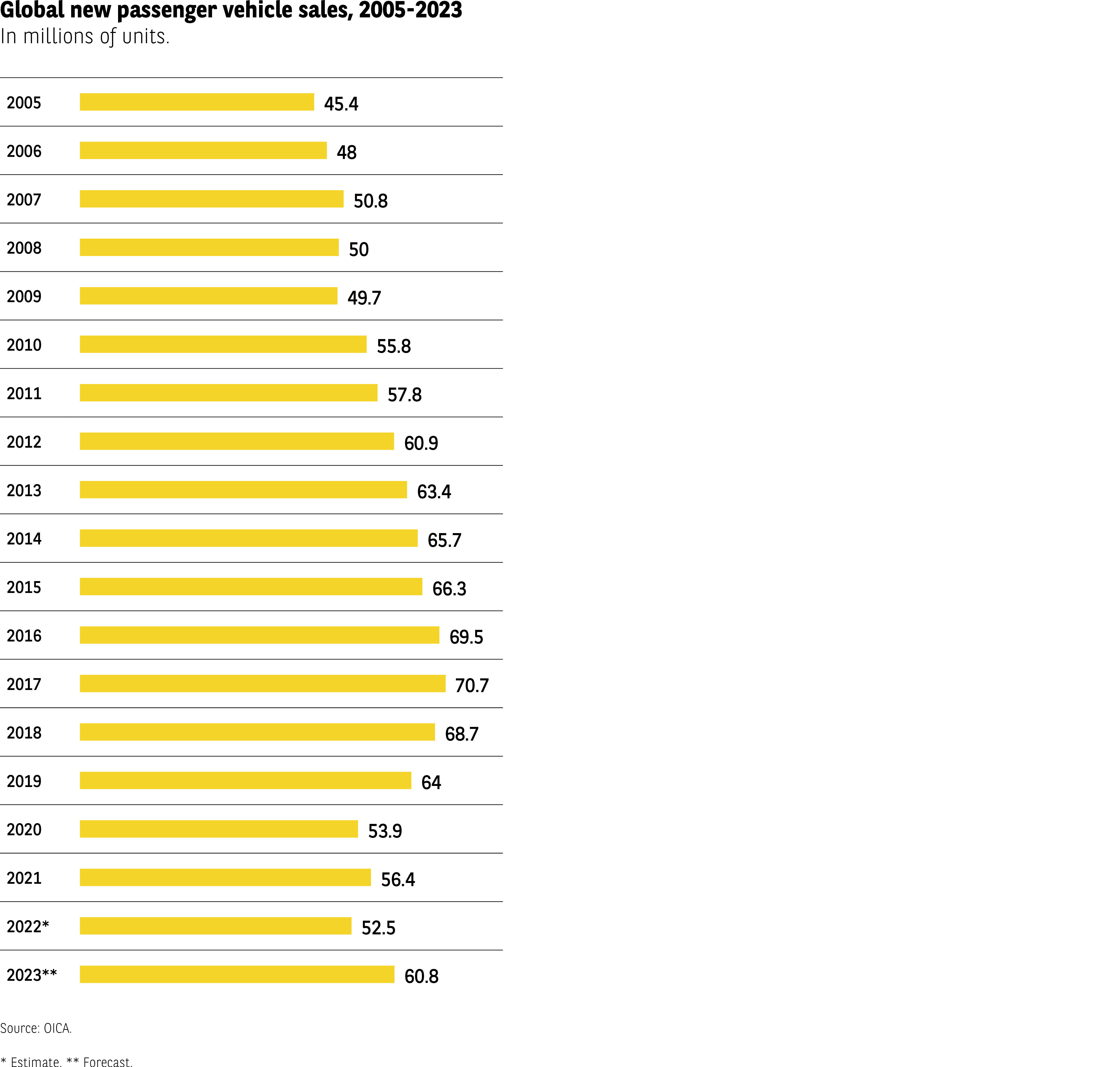 Fig 1 – Global sales of new passenger cars 2005–2023