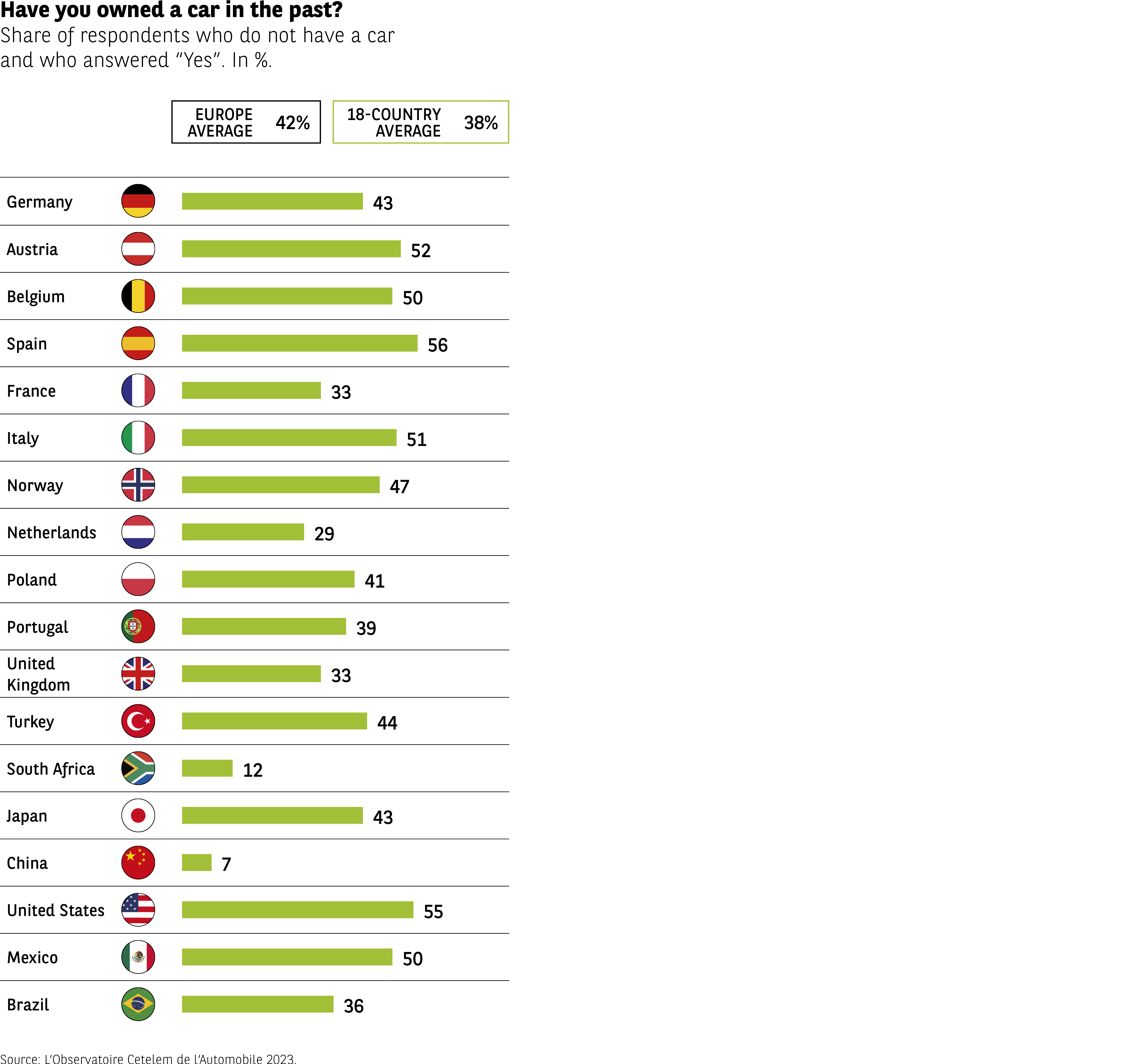 The infographic presents, among respondents who do not currently own a car, the percentage who have previously owned one.