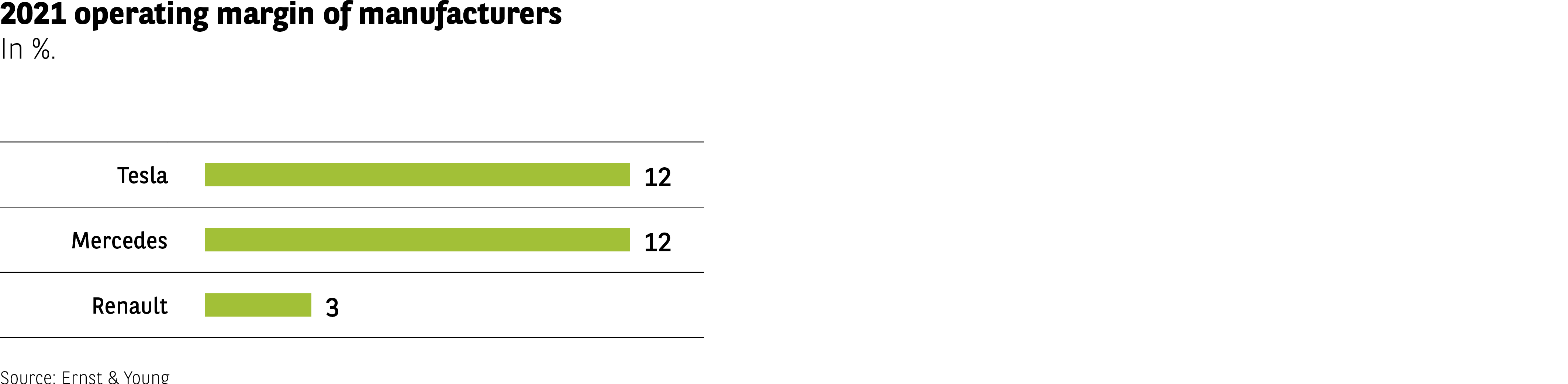 The data shows that Tesla and Mercedes achieved similar margins, both significantly higher than Renault.