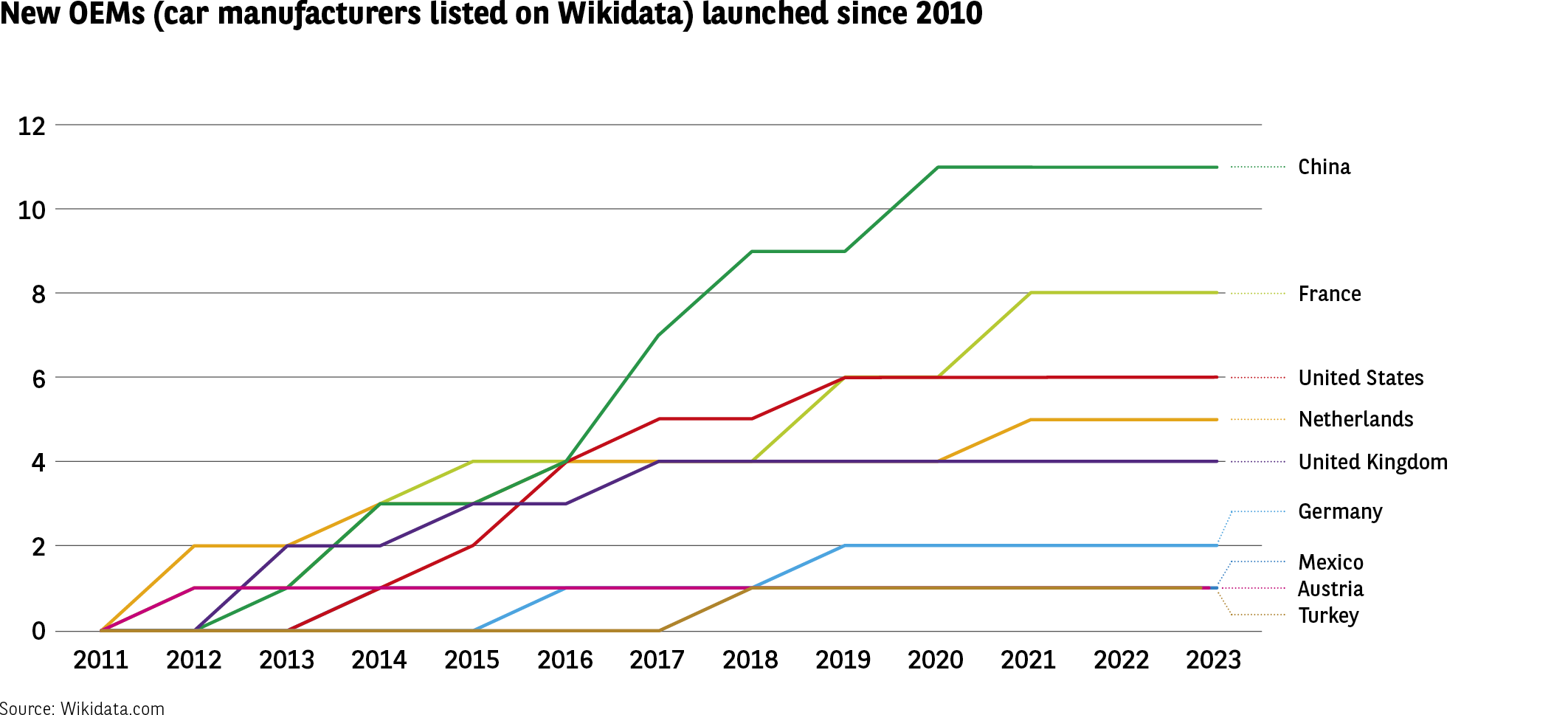 The exponential growth of the Chinese market and its brands is striking proof of this transformation. In just over two decades, more than 20 new brands have seen the light of day (Fig. 35). Most of these brands are developing electric vehicles. And that’s without counting the brands that were already present on the market which, as in the case of MG and even more so BYD, a premium all-electric brand, intend to shake things up and appeal to motorists with low-cost electric vehicles (until now an oxymoron) sold at prices comparable to those of combustion engine vehicles.