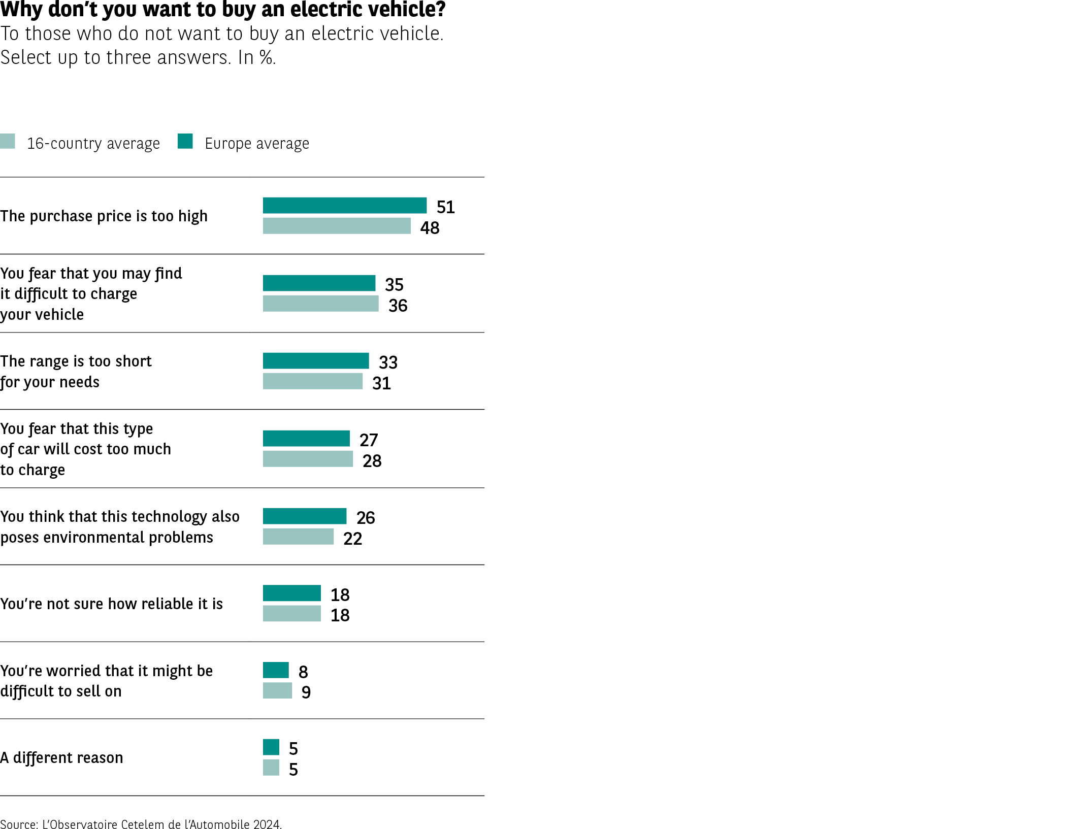 Price and charging constraints are the main brakes, followed by autonomy and energy cost.