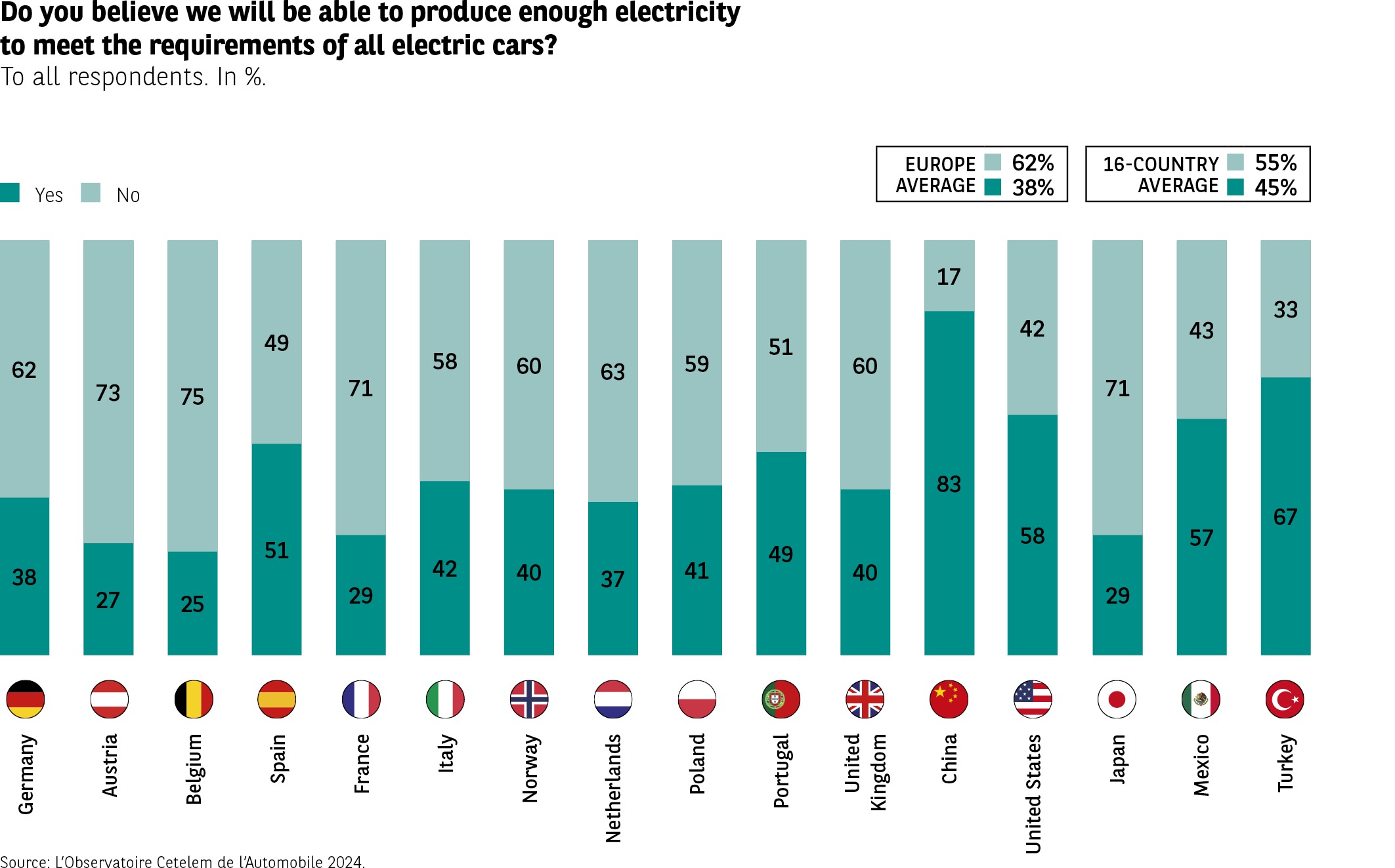 Not only could electricity become more expensive, there are also question marks over its supply. Indeed, more even than the planned pre-eminence of electric vehicles, motorists question their very use, as they suspect that power generation will be inadequate in the future. Three-quarters of respondents take this view, no doubt influenced by the recent energy crises. This seems to exceed the boundaries of mere scepticism.