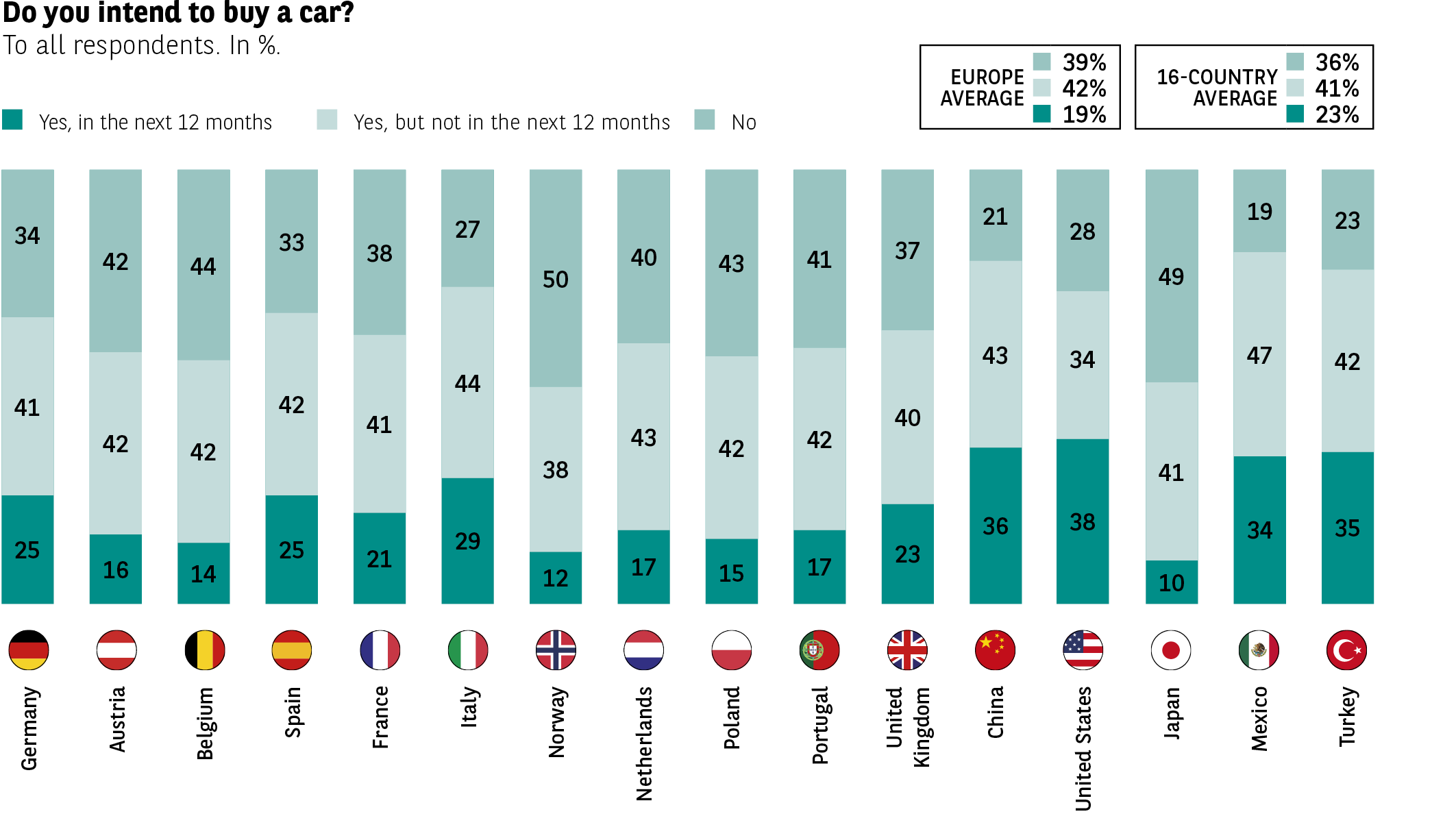 Based on the previous results, one might have expected inflationary pressures to have generated a degree of timidity in the countries that were most vocal about the issue. The reality is more complex While the highest proportions of motorists who intend to replace their vehicle can be found in the world’s largest markets, China and the United States (around 4 out of 10 respondents), a comparable number can be found in Turkey and Mexico. The leading European countries, including France, fall within the overall average. Norway and Japan trail behind, with motorists remaining hesitant, not to say reluctant.