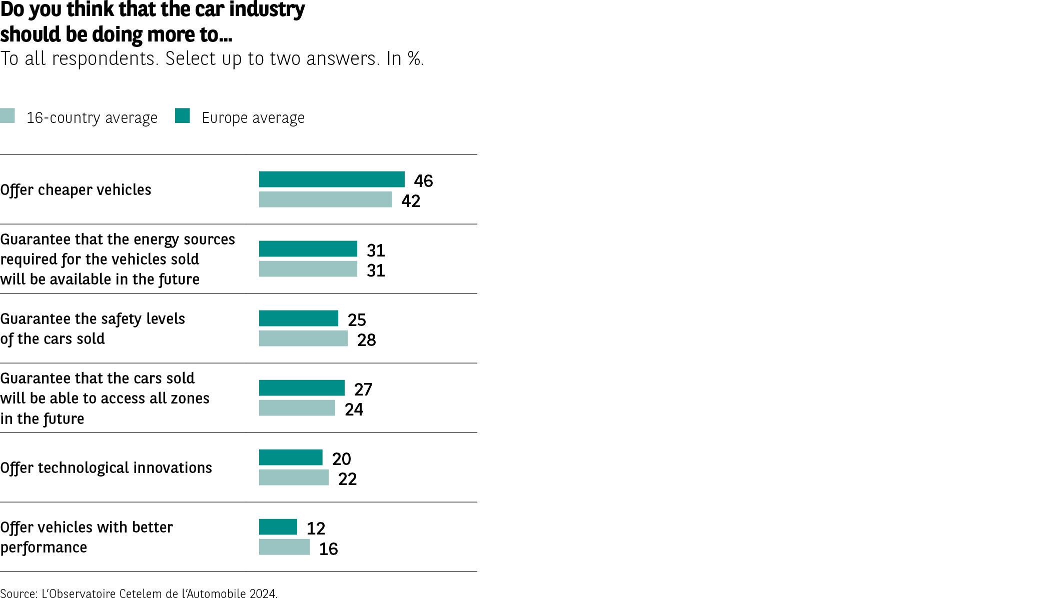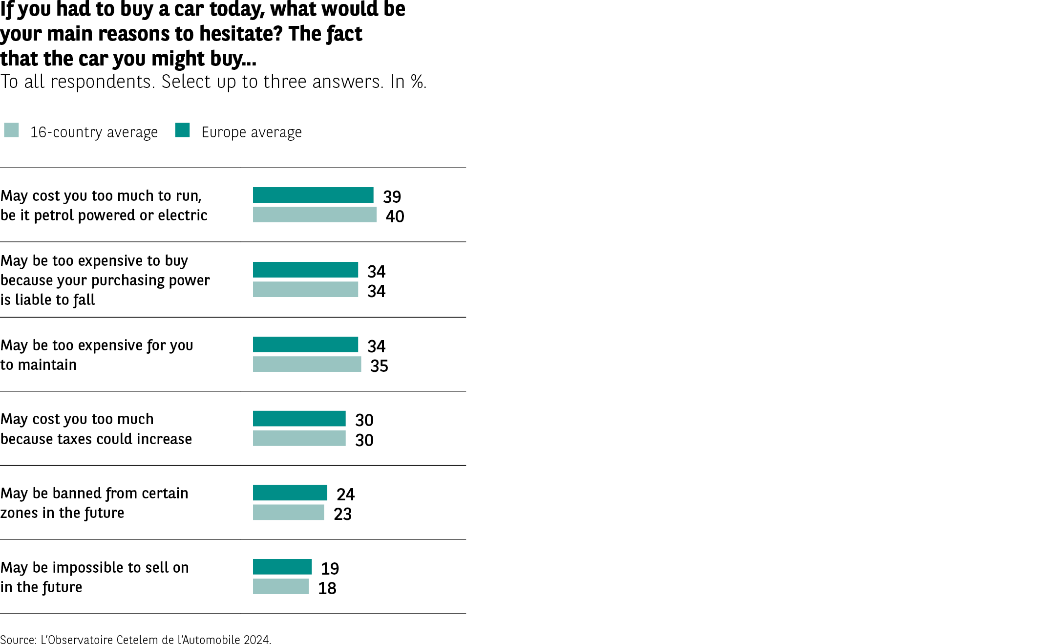 Progress is all very well, but we should not ignore a reality that is more prosaic. And no particular insight is needed to highlight once again what is most important in the minds of motorists: price. As underlined at the start of this report, this is people’s number one preoccupation year after year, particularly in Poland and France, where this issue scores over 50%. The fact that electric vehicles cost more than internal combustion vehicles does little to reassure motorists or offer them a clearer picture, much like the price increases applied by carmakers in recent years. The price war predicted will likely plunge them further into uncertainty and exacerbate their hesitation.