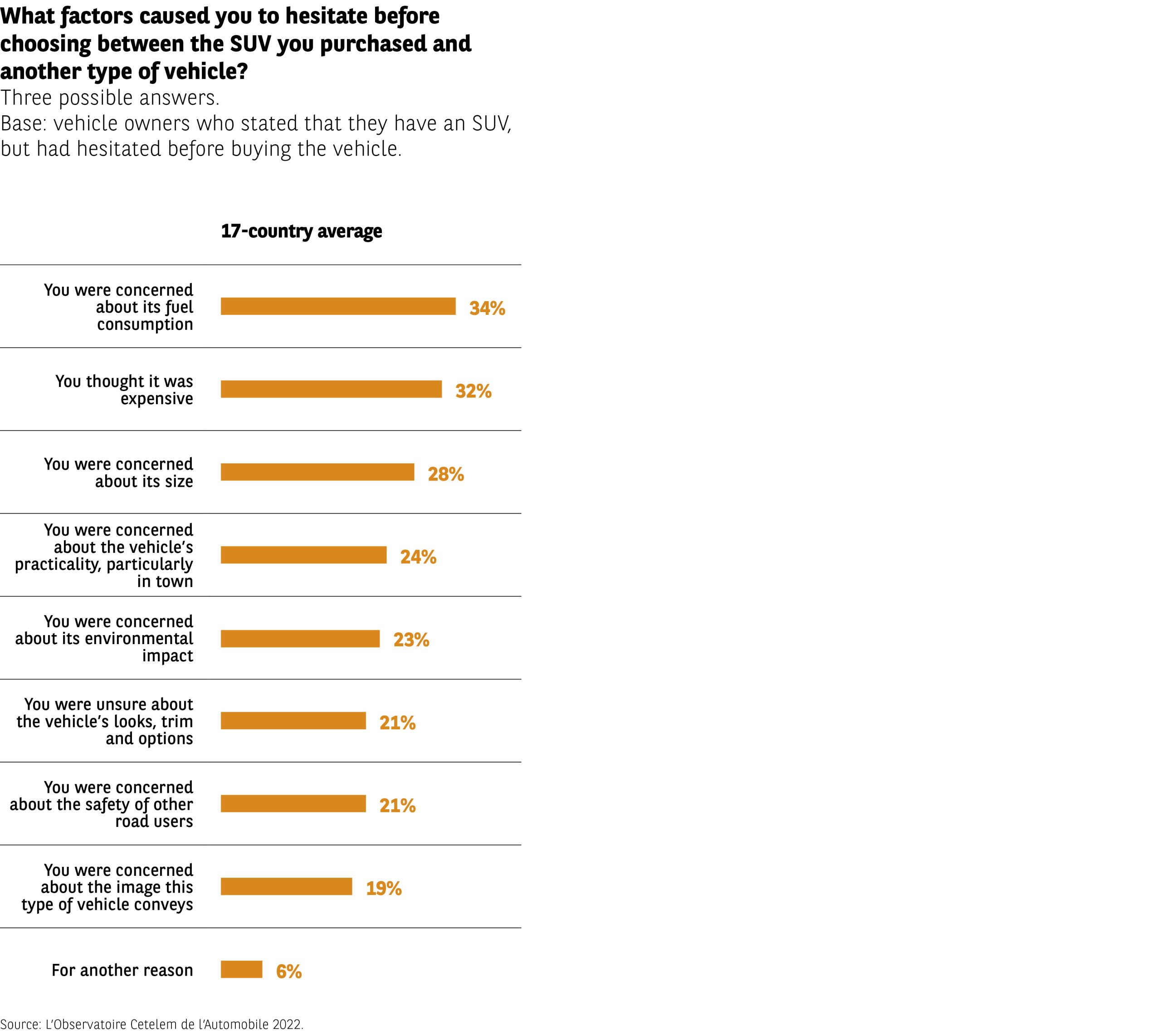 the infographic lists the reasons given by SUV owners who hesitated between an SUV and another type of vehicle.