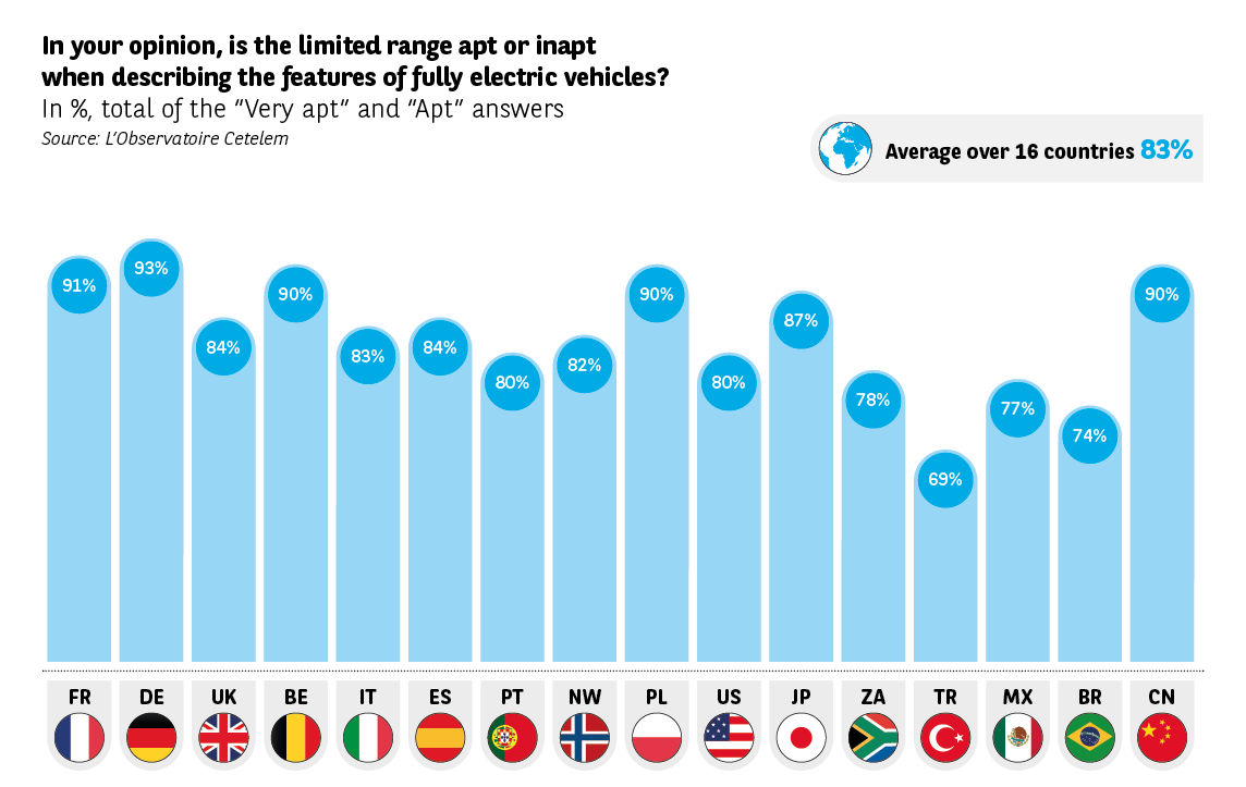 83% of those who replied claimed this limitation to be a feature of the electric vehicle, with the Germans being the most inclined to think this (93%) and the Turks being the least likely to believe this, in relative terms (69%).