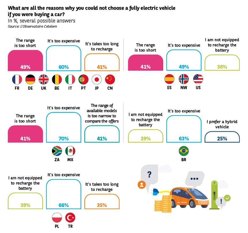 The short range appears in the top 3 reasons why those who replied would not buy an EV. This weakness was pointed out by 42% of the sample.
