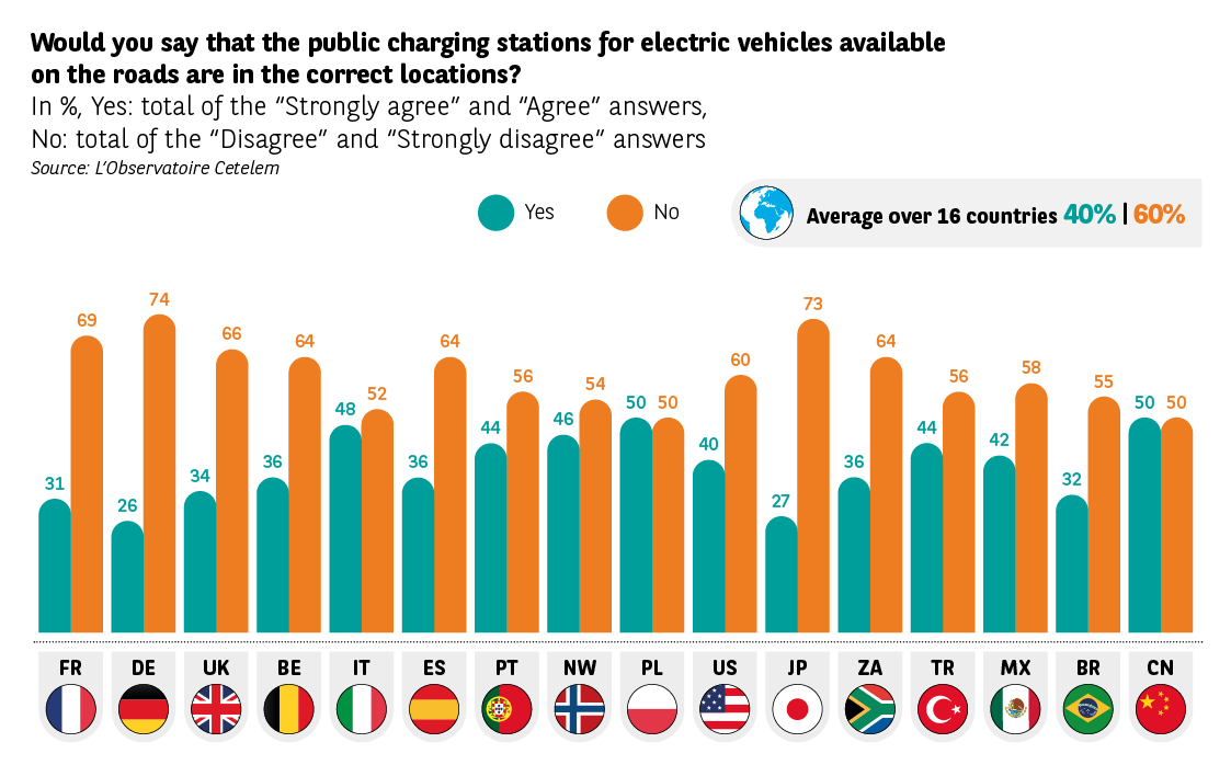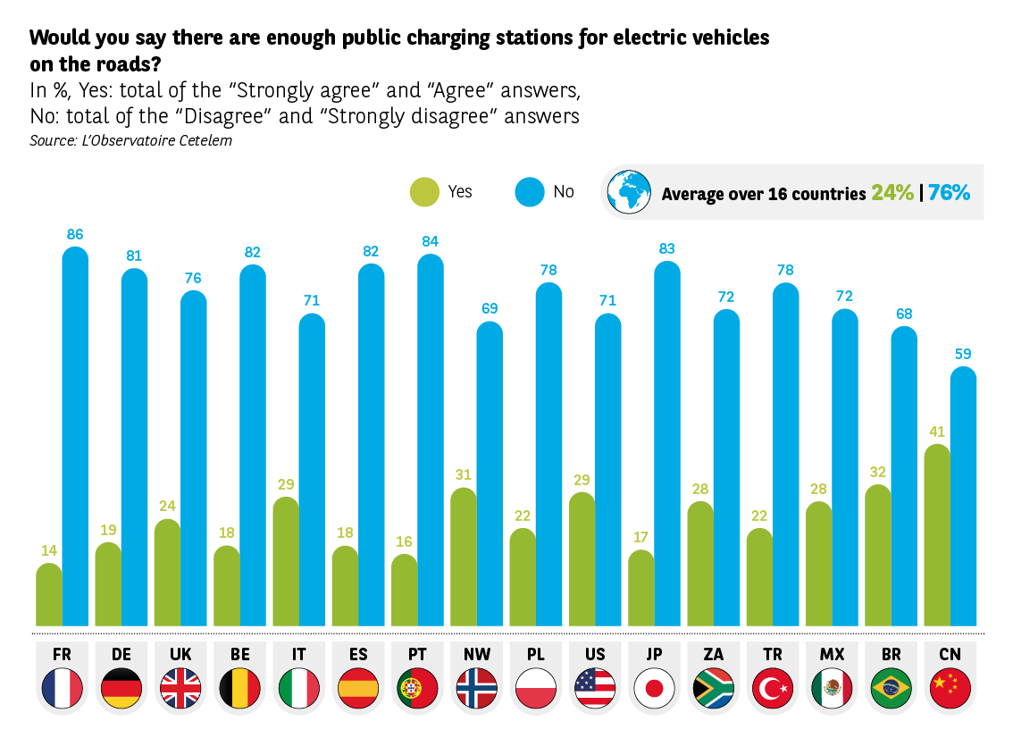 Motorists expect better from the offer provided by charging stations on public roads: 76% of those who responded consider the current infrastructures to be very inadequate,
