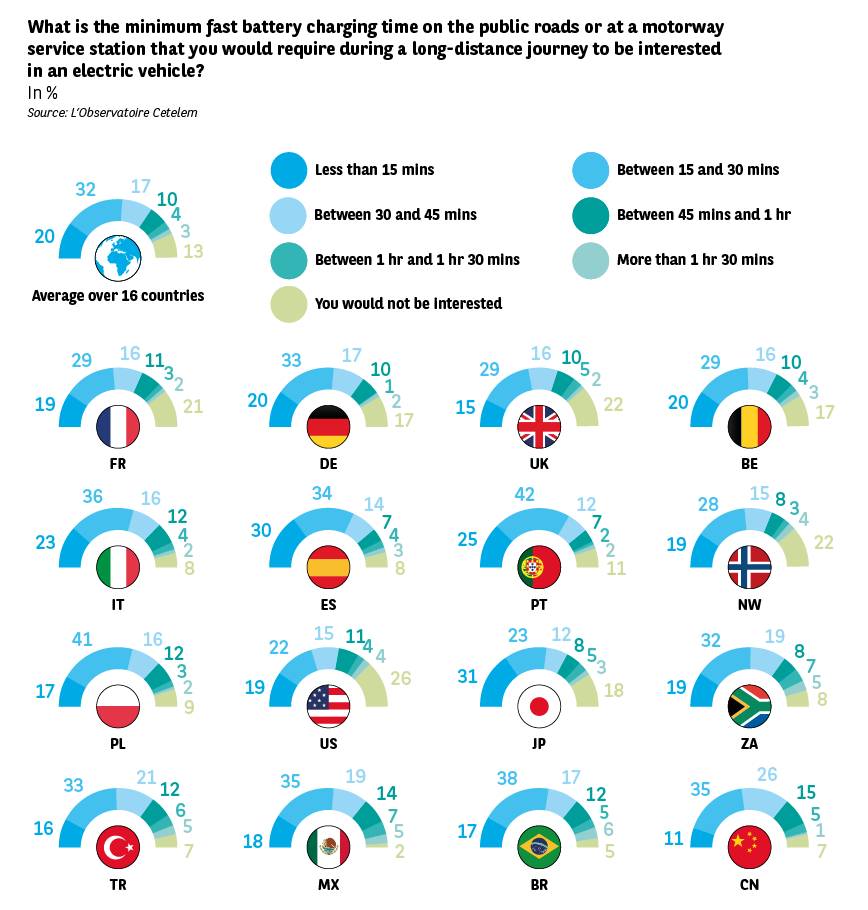 and 70% demand a charging time of less than 45 minutes to be interested in an electric vehicle.