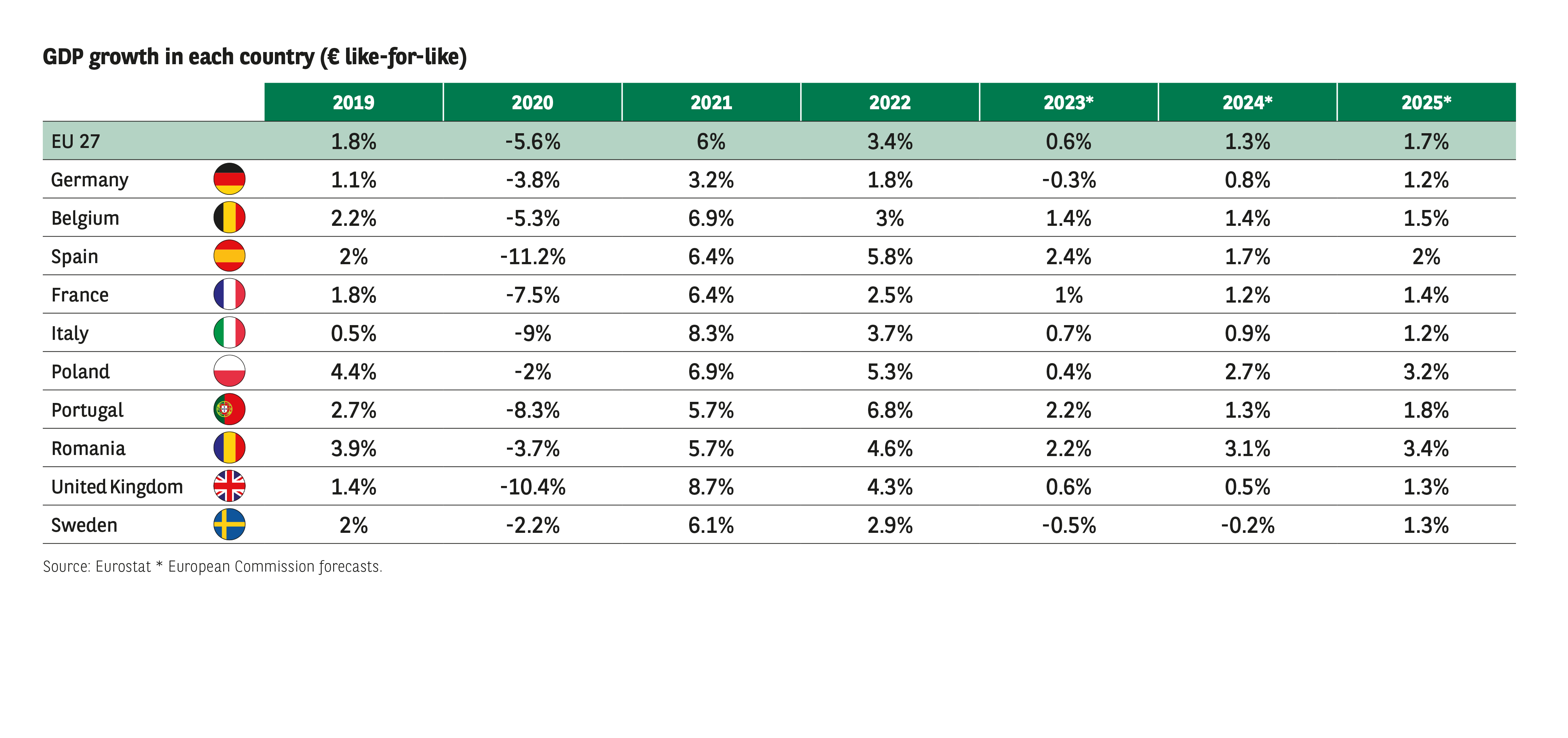 One year on, how is morale among Europeans? How have they adapted to an increasingly gloomy political and economic climate marked by global geopolitical tension, not least the Israel-Hamas war and the risk that it may spread within the region? What is beyond doubt is that the past year has been a difficult one from a macro-economic perspective. After a very strong post-pandemic rebound in 2021 and 2022, the European Union’s economy lost momentum, growing by just 0.6%. Germany and Sweden are even set to post negative growth in 2023, at -0.3% and -0.5% respectively.