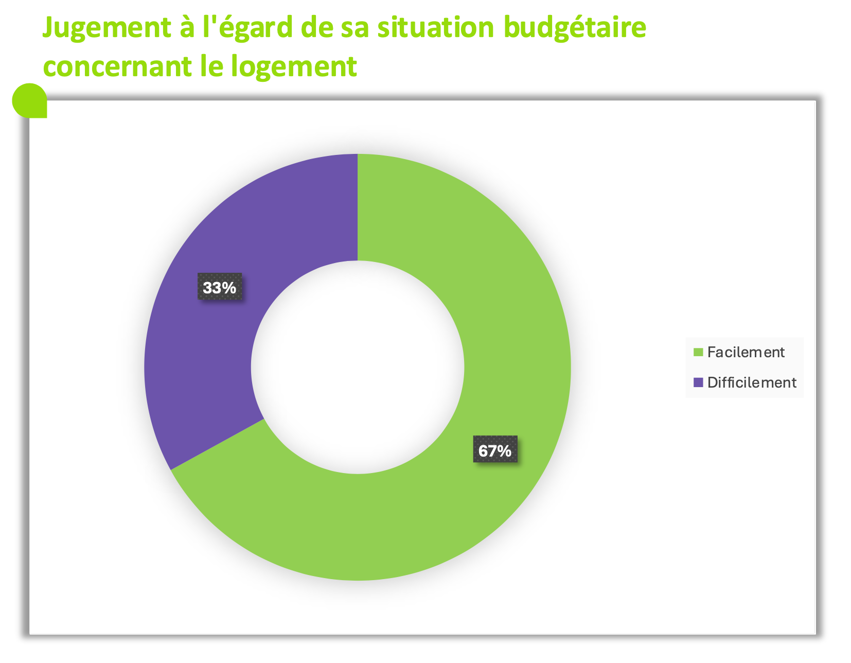 L’infographie montre un diagramme en anneau montrant la manière dont les répondants évaluent leur situation budgétaire concernant le logement.