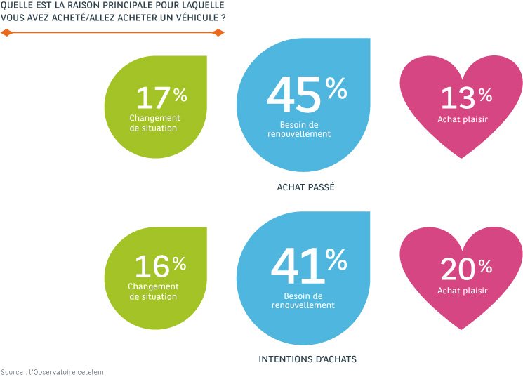 La notion de plaisir est en hausse dans les intentions d’achat. Elle vole sa seconde place au changement de situation, toujours assez loin derrière le besoin de renouvellement.