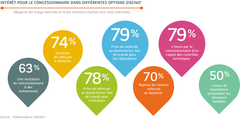 La réactivité et la rapidité qu’offre Internet ne peuvent seules suffire à redynamiser la distribution automobile. Les acheteurs de véhicules sont avides de conseils, et le défi que doivent relever les concessionnaires et les vendeurs est de savoir réenthousiasmer l’achat automobile, en s’appuyant sur la proximité des réseaux traditionnels, pour proposer judicieusement aux clients davantage de services et d’assistance.