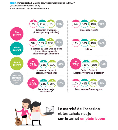 Autres phénomènes incontestables dans l’évolution des pratiques de consommation, la progression du digital et la solidité des pratiques de consommation collaborative et du marché de la seconde main.
