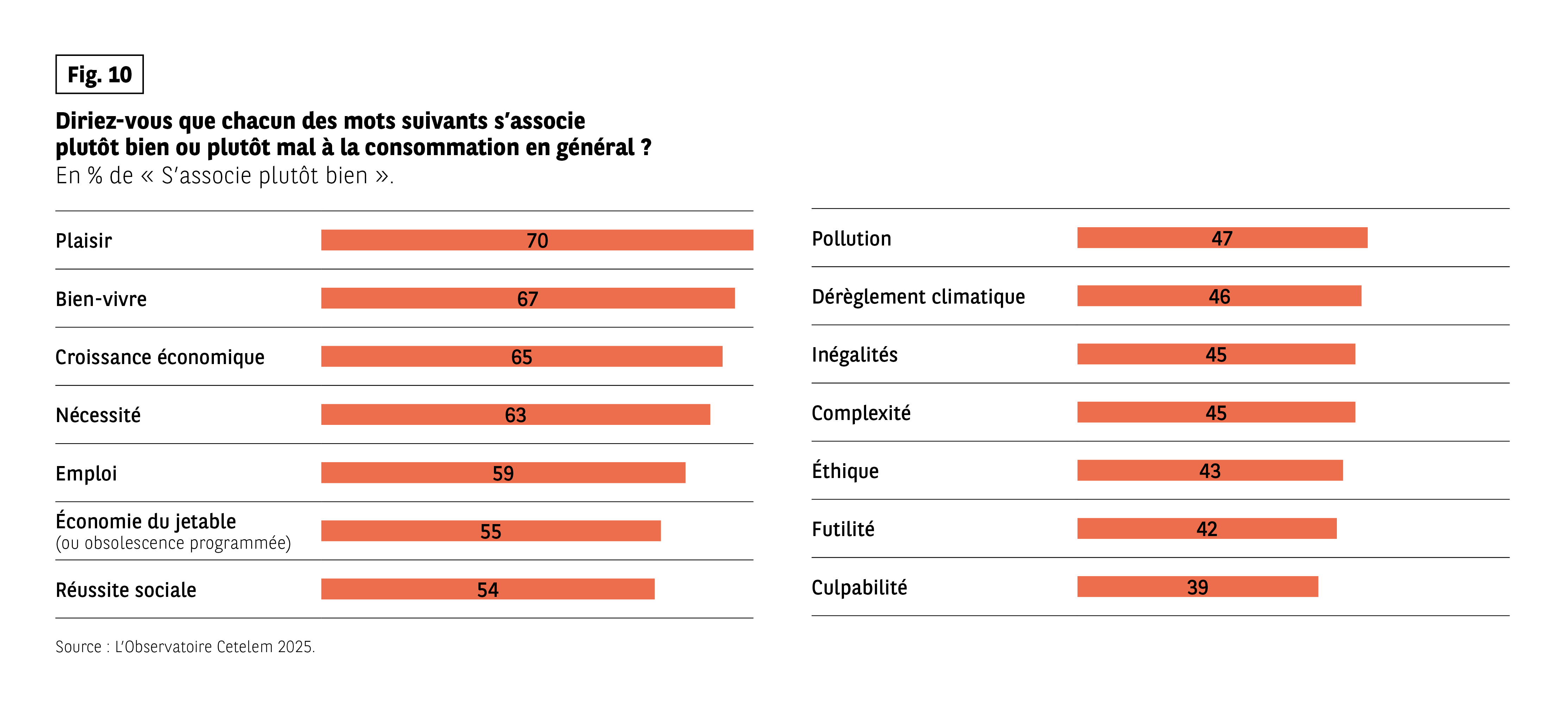 Question : « Diriez-vous que chacun des mots suivants s’associe plutôt bien ou plutôt mal à la consommation en général ? »