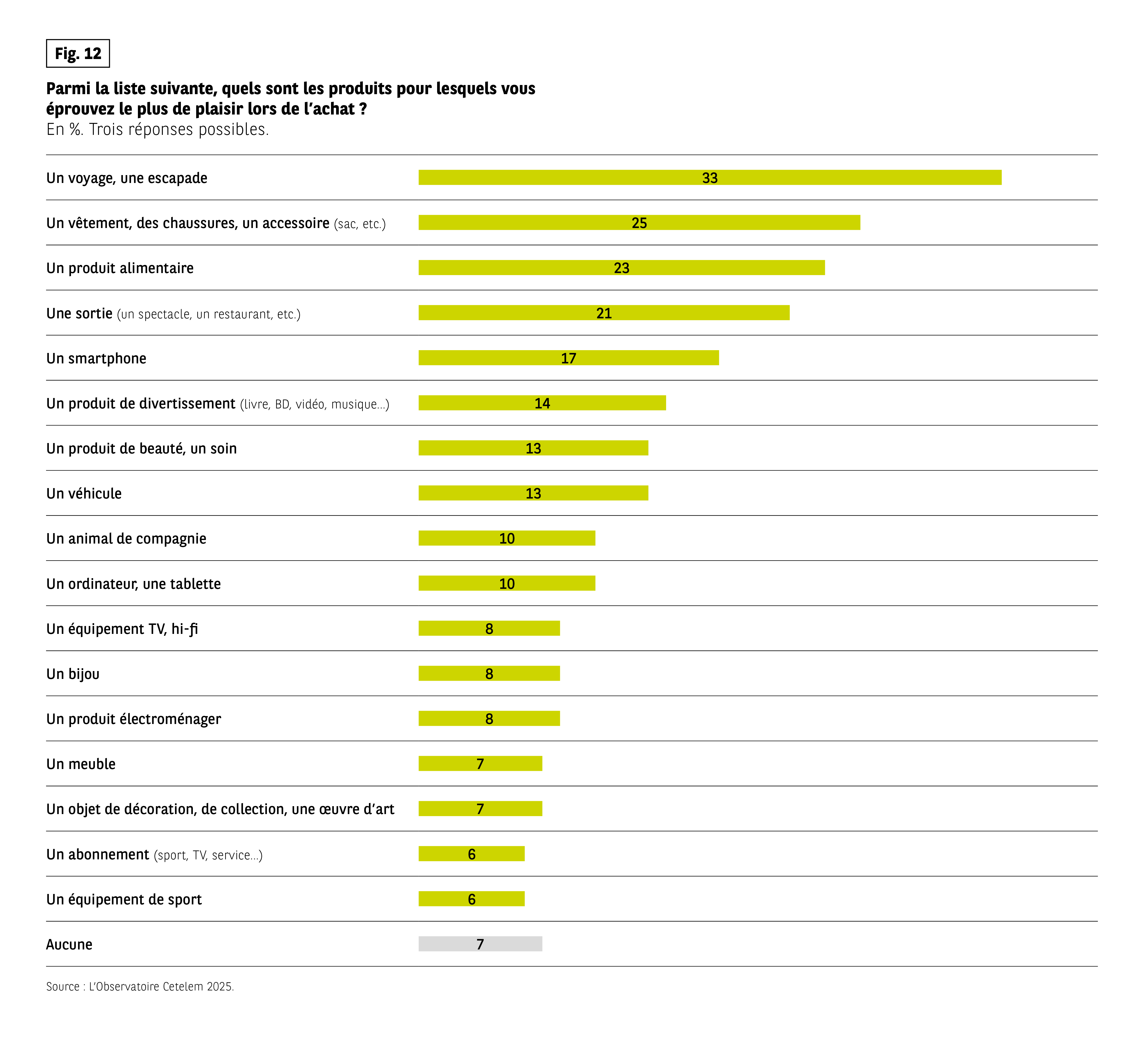Fig 12 – Produits procurant le plus de plaisir lors de l’achat