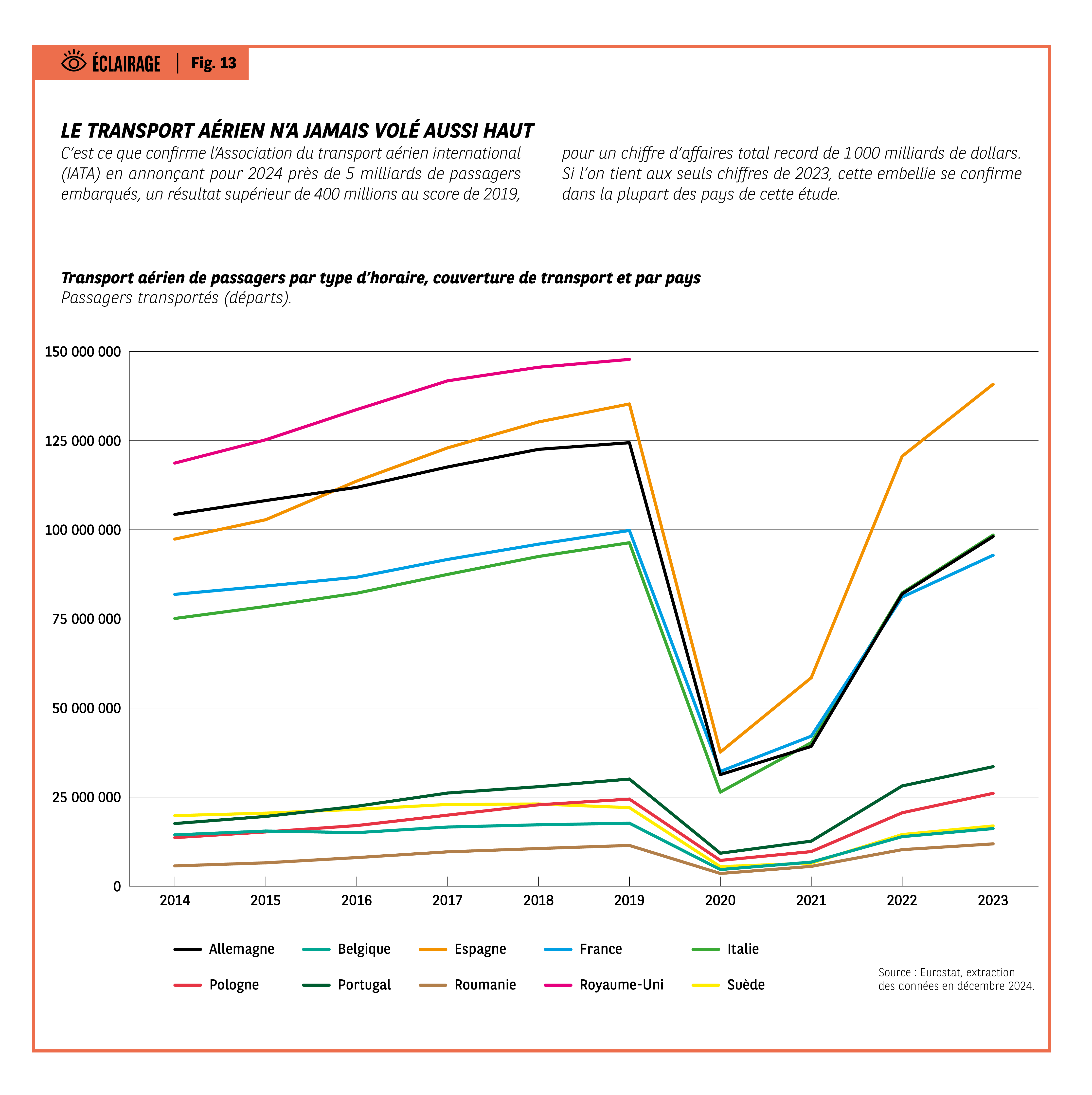 Fig 13 – Évolution du transport aérien de passagers par pays depuis 2014