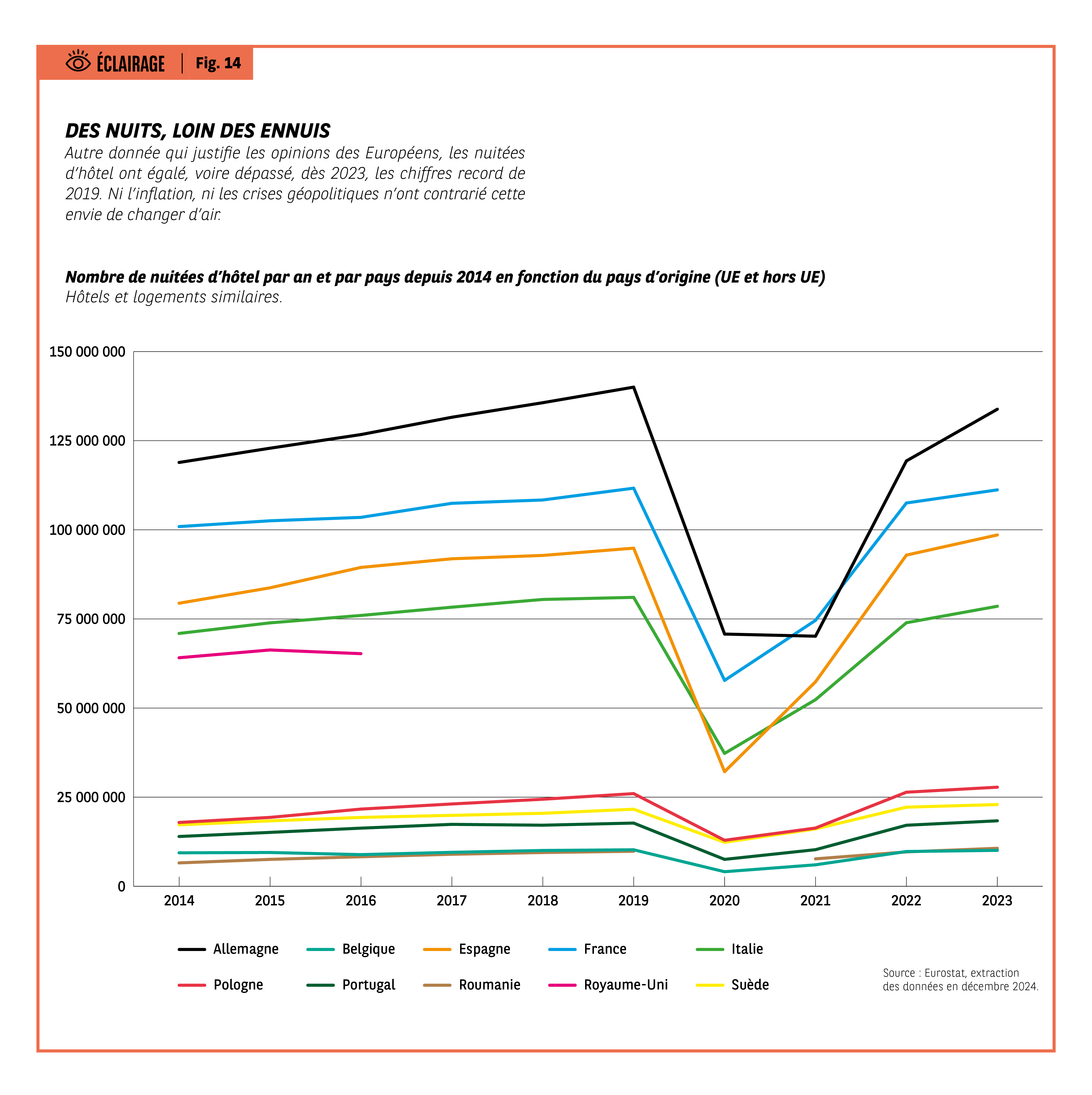 Fig 14 – Nuitées d’hôtel par pays depuis 2014