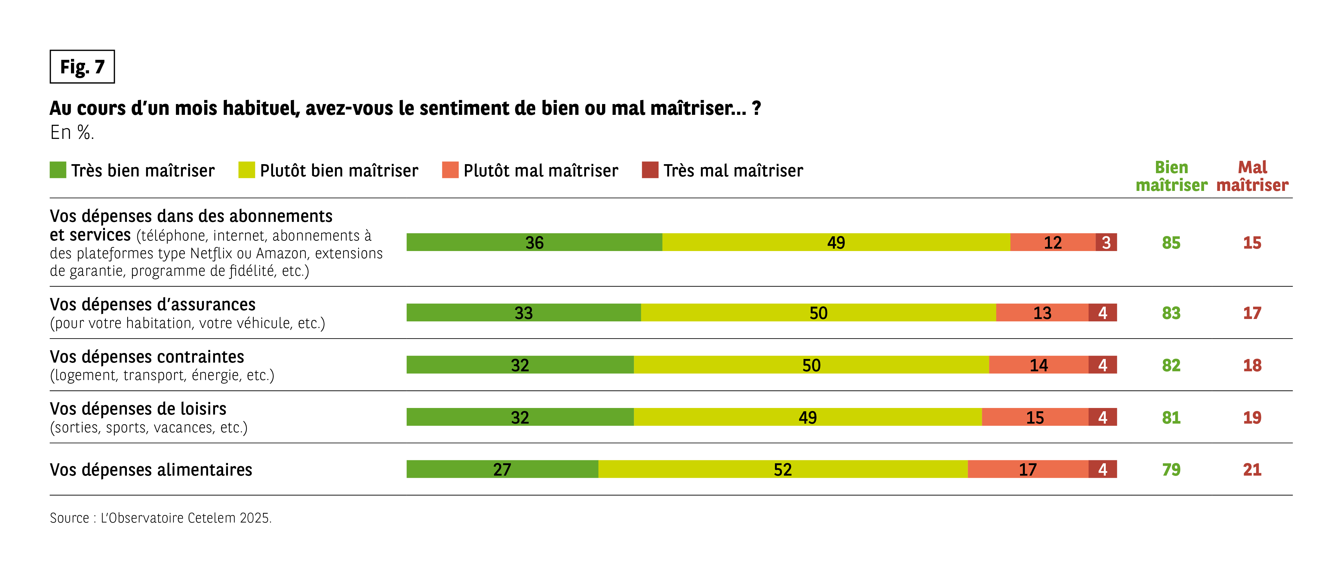 Fig 7 – Sentiment de maîtrise de différents types de dépenses