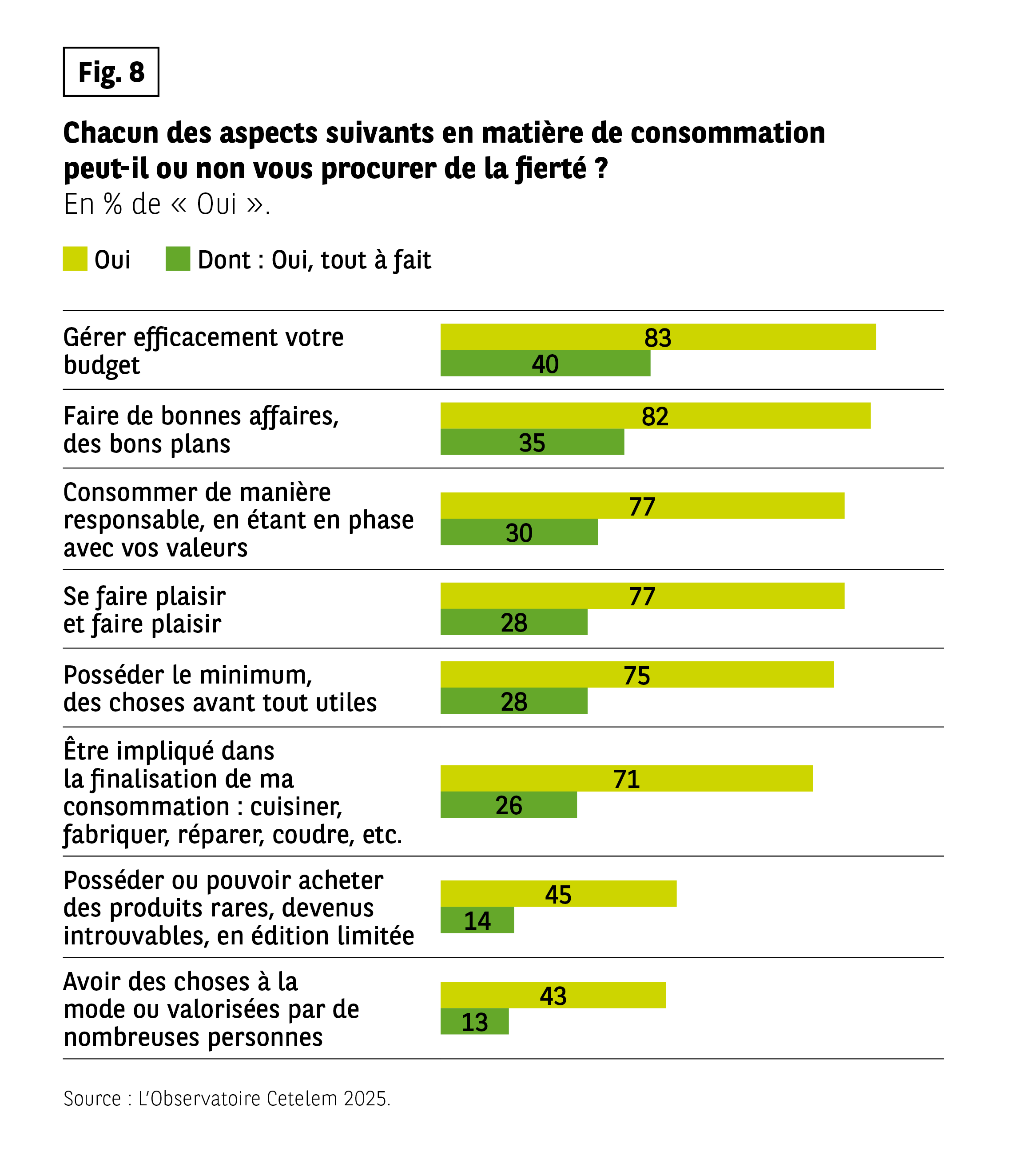 Fig 8 – Aspects de consommation qui procurent de la fierté