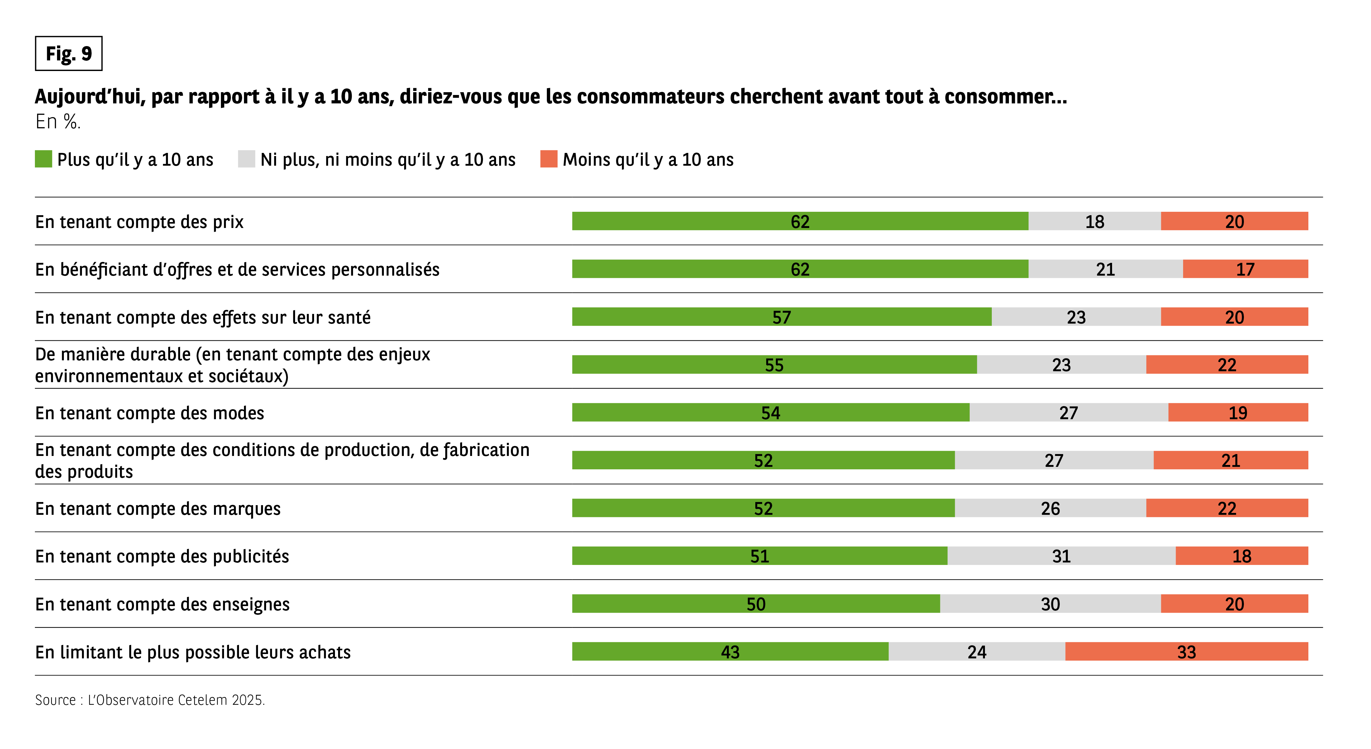 Fig 9 – Critères de consommation plus recherchés qu’il y a dix ans