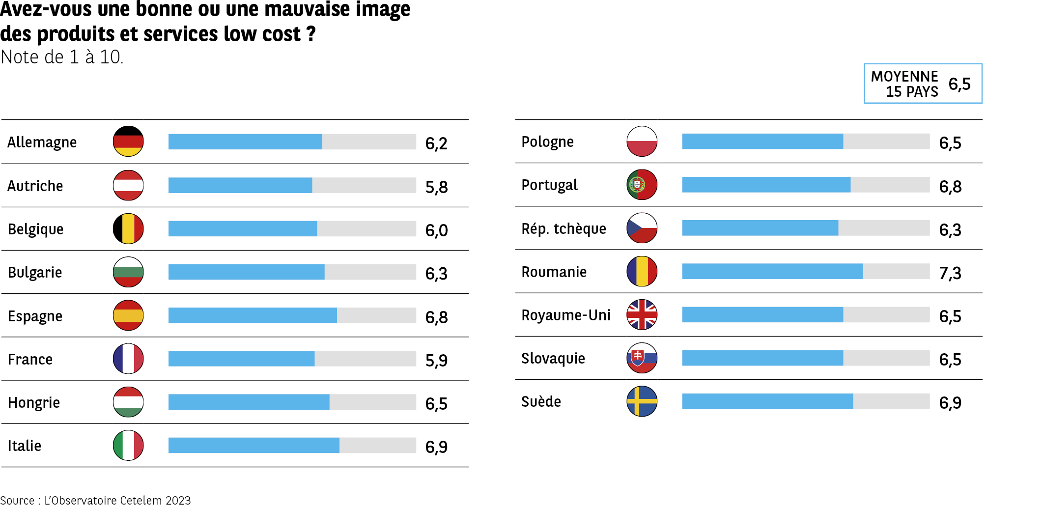 Avec une note moyenne de 6,5/10 concernant son image, le low cost n’est pas plus rejeté qu’il n’est plébiscité.