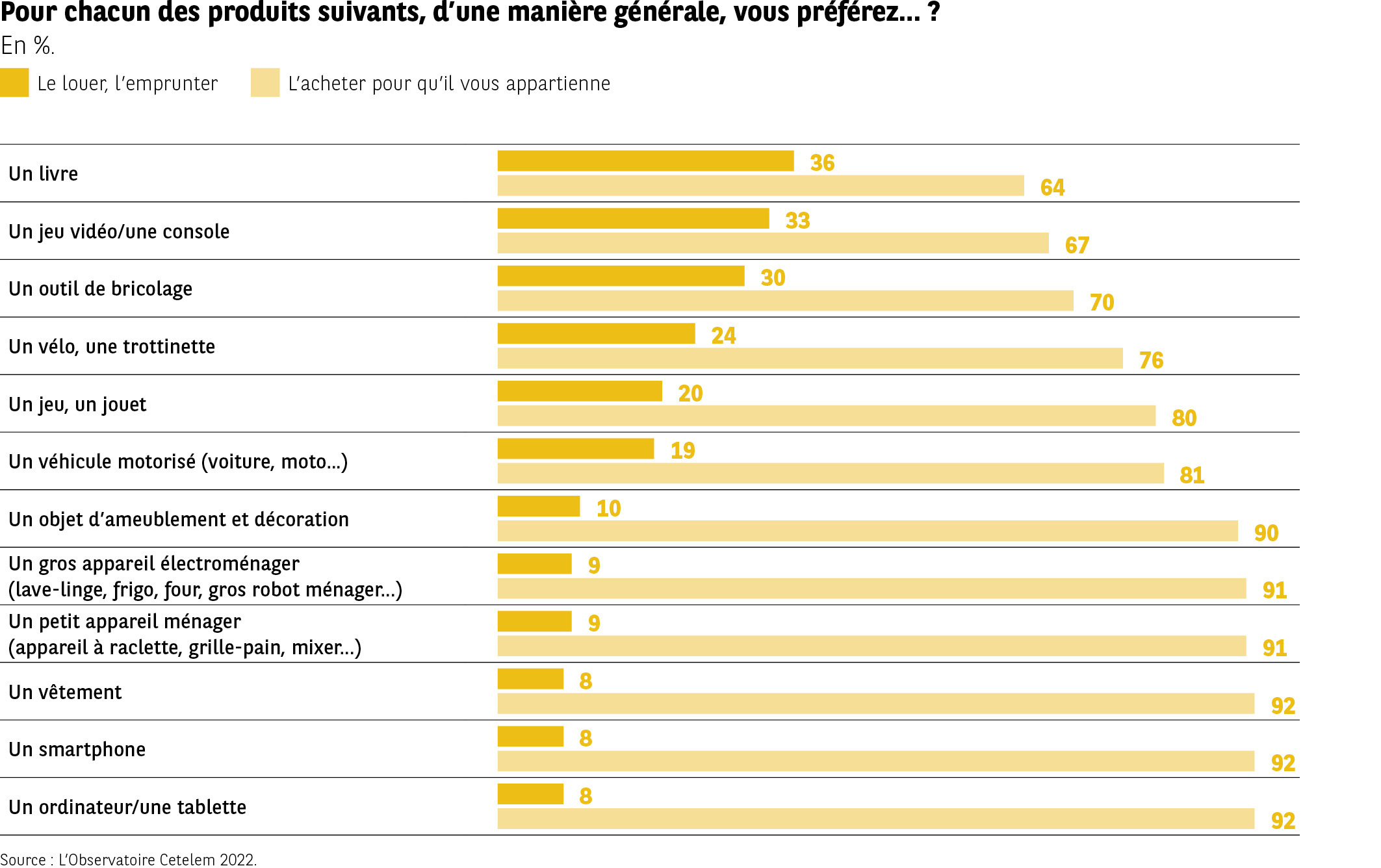 Pour chaque type de produit, le graphique compare la part de répondants qui