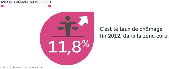 - L’Europe du Nord résiste mieux. Par exemple, la vision positive des Allemands s’explique par un marché du travail qui résiste bien à la crise et assure un soutien à la consommation privée. Le taux de chômage y est historiquement bas : 6,9 % fin 2012.