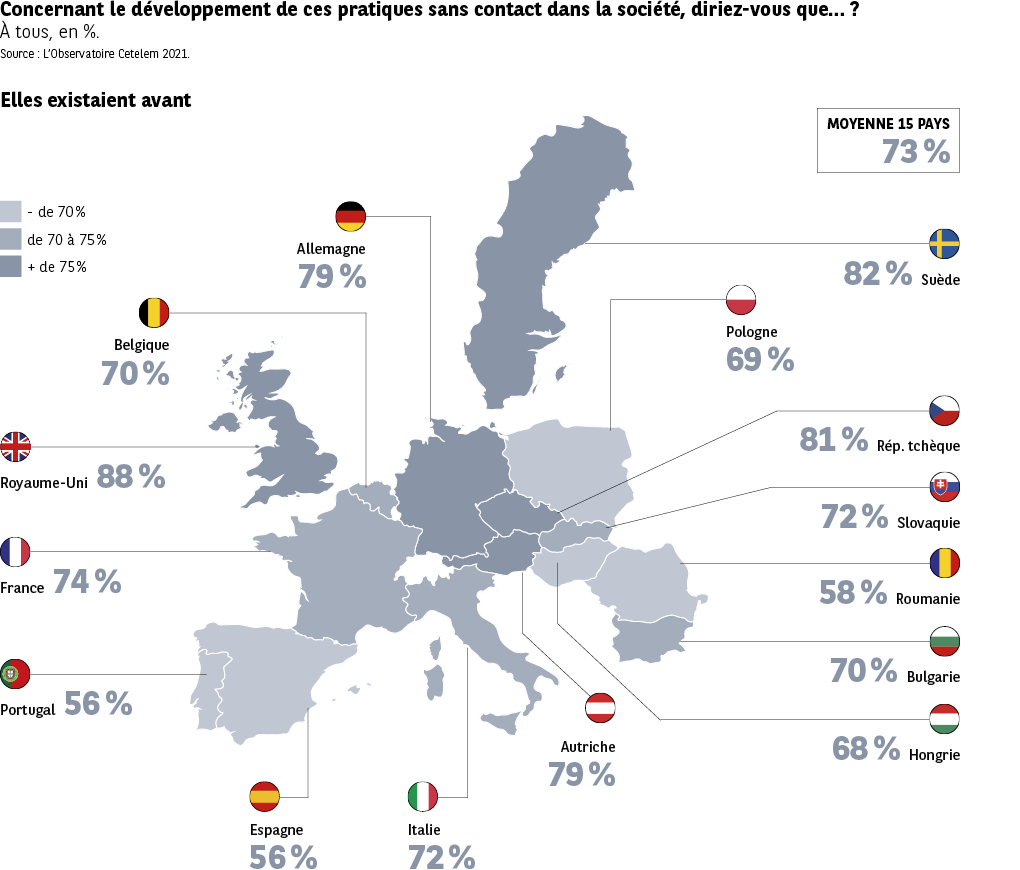 - 73 % des Européens estiment que les pratiques sans contact existaient déjà avant la crise sanitaire