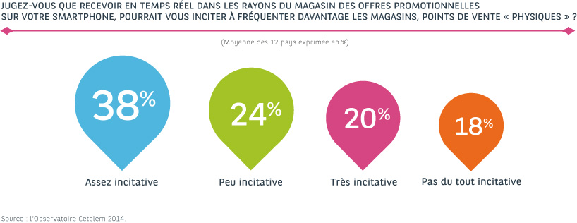 La sensibilité prix chez le consommateur est exacerbée depuis la crise. Les Européens ont l’œil rivé sur leur pouvoir d’achat. Dès lors, offrir aux clients un service qui leur permet de « recevoir en temps réel dans les rayons du magasin des offres promotionnelles sur leurs smartphones » pourrait s’avérer payant en termes de fréquentation des magasins. En effet, en moyenne, près de six Européens sur dix estiment que cela pourrait les inciter à fréquenter davantage les points de vente physiques. Une telle application permet au consommateur de saisir les opportunités promotionnelles en situation d’achat : cela répond au besoin « d’achat malin », au meilleur prix, si prisé des consommateurs européens. Une application smartphone proposant des offres ciblées aux clients au bon moment peut être un vrai déclencheur d’achat et favoriser les achats impulsifs.
