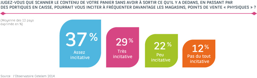 Les applications délivrant de l’information sont essentielles aux yeux des consommateurs et leur permettent de retrouver en magasin la richesse d’informations qu’ils ont l’habitude d’avoir sur Internet. Ainsi, déjà 23 % des Européens des douze pays étudiés scannent avec leur smartphone les QR codes des produits, 37 % des Européens ne le font pas encore, mais ils jugent néanmoins cette application smartphone très utile ! De même, 39 % des Européens ont déjà recours aux équipements mis à leur disposition (tablettes ou bornes interactives) pour accéder à des informations plus développées sur les produits. Le potentiel supplémentaire de ce type de service est important : 36 % des Européens n’y ont pas encore eu recours, mais trouvent ces services sur bornes ou tablettes très utiles.