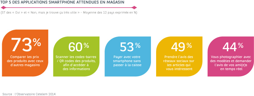 Les applications digitales les plus plébiscitées doivent avant tout répondre à des besoins basiques et pratiques, que ce soit en termes d’information prix et d’information produit, ou que ce soit en termes de confort et de gain de temps apportés au consommateur dans son par- cours d’achat.