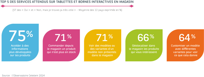 Une autre possibilité offerte par ces dispositifs est aussi de pouvoir acheter ce qui n’est pas disponible. Elle représente même la deuxième attente par rapport à ce type d’équipement digital en magasin, juste derrière l’accès à des informations sur les produits.