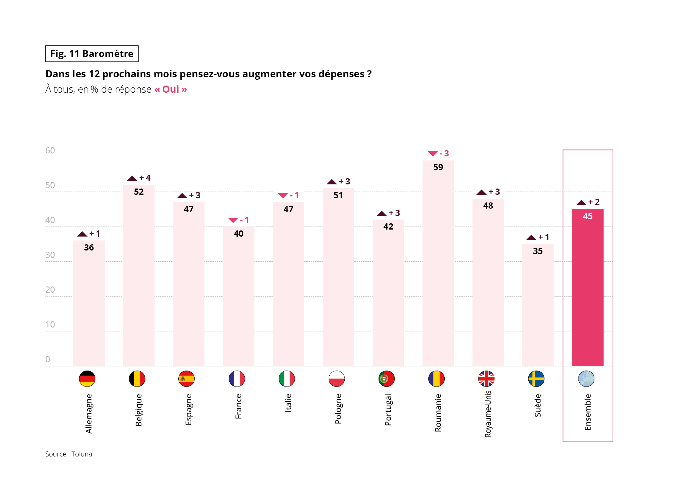Fig 11 – Intention d’augmenter les dépenses par pays